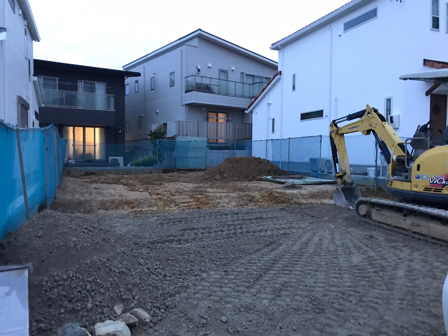 まずは基礎の形に合わせて土を削り取り、いよいよ着工開始です。