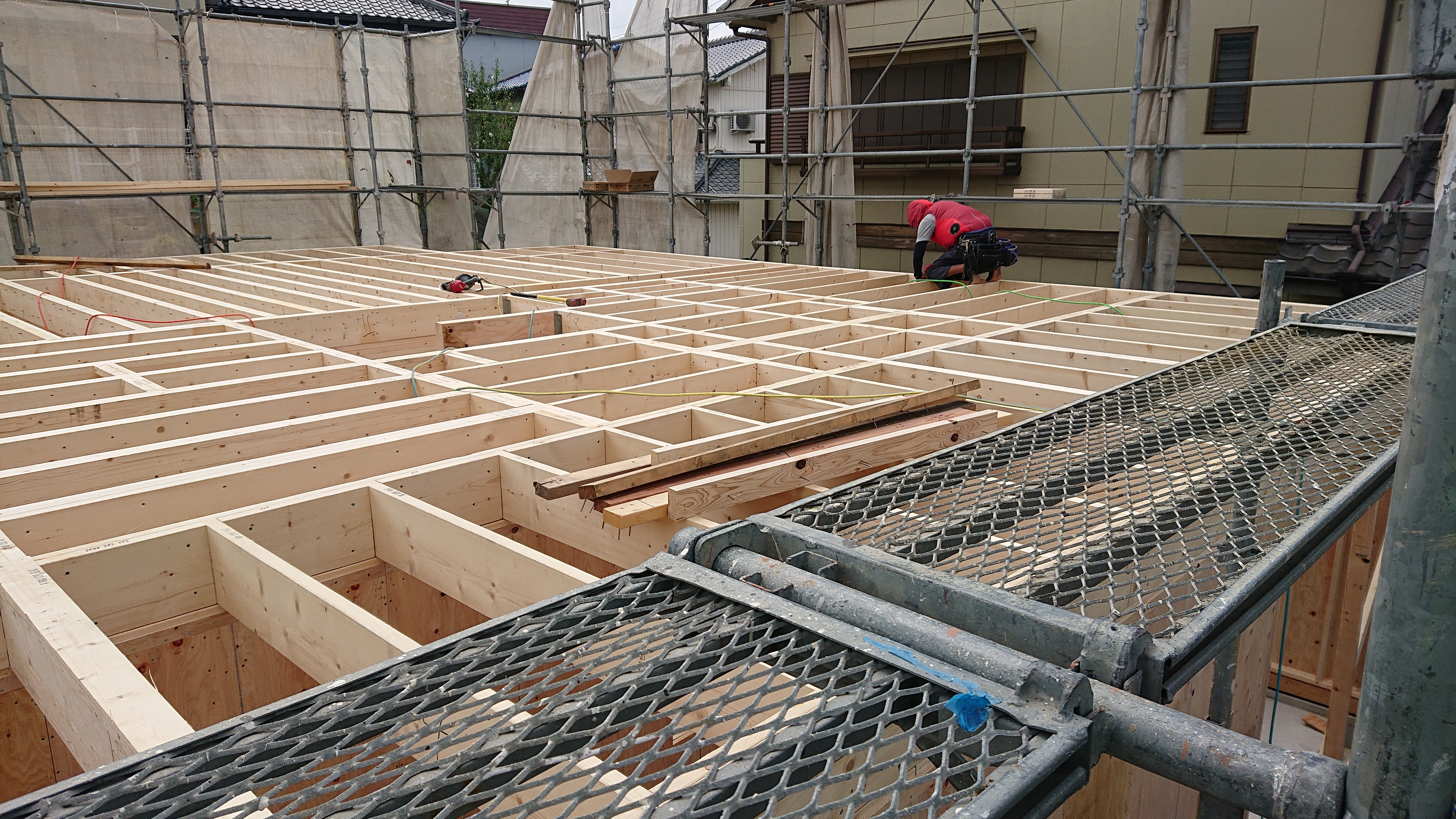 A様の現場では基礎工事が終わり、建方工事が行われました。