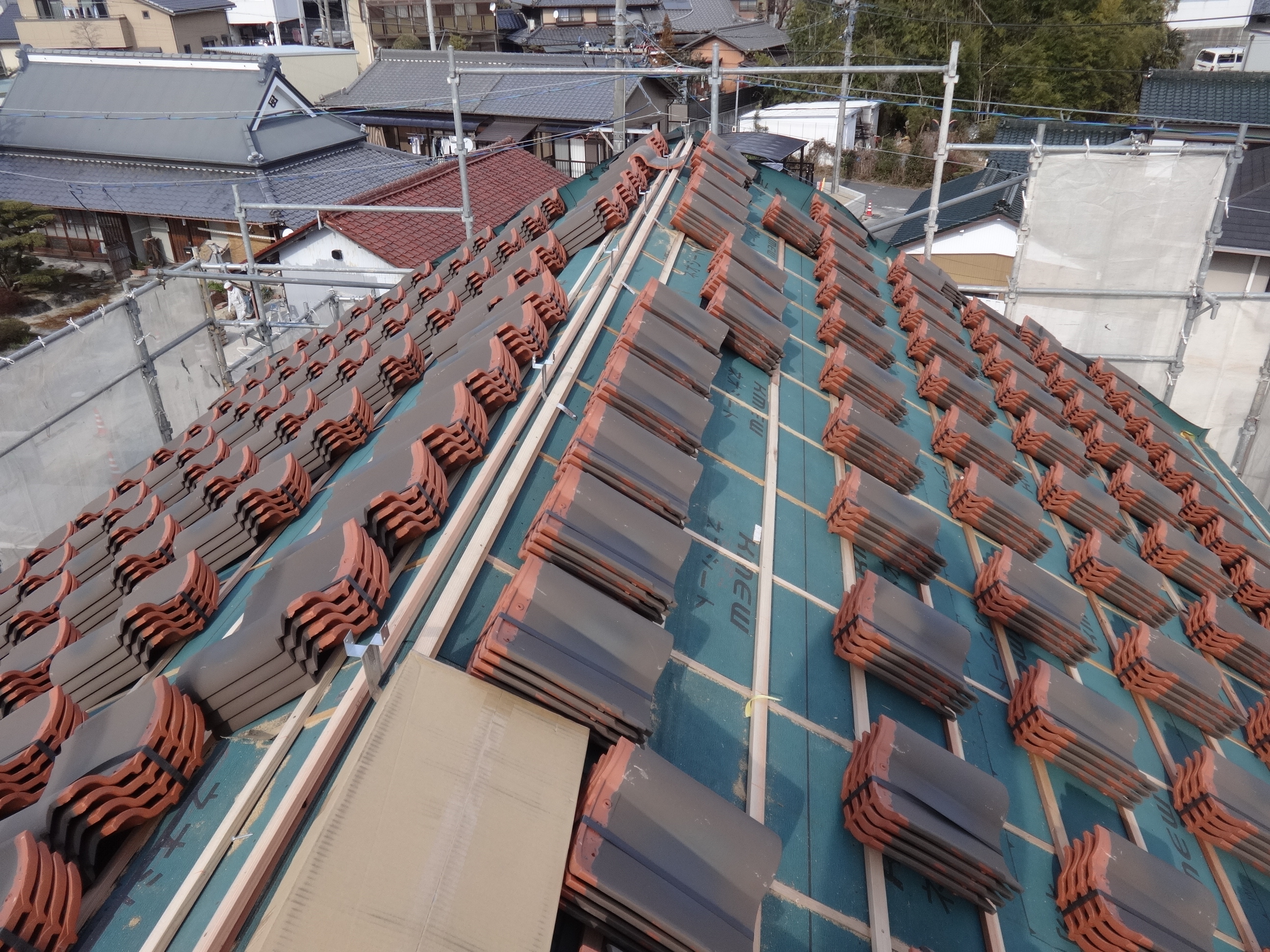 モデルハウスと同じく屋根工事も行いました。