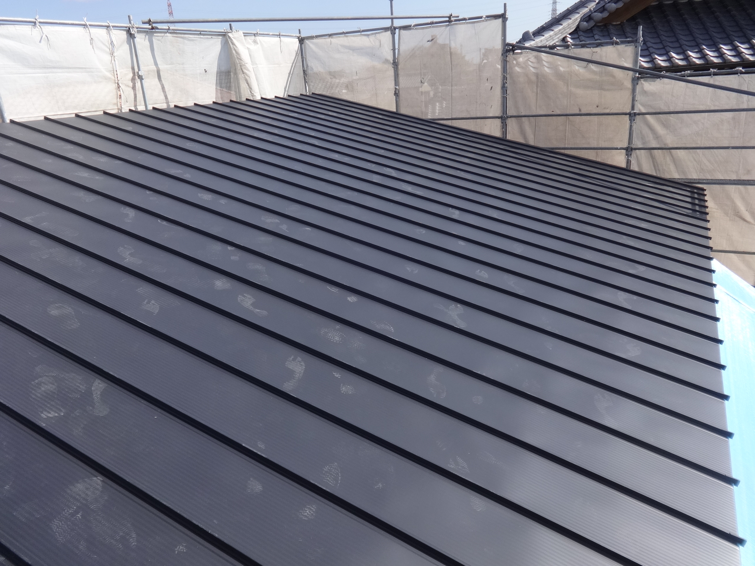 この屋根はガルバリウム鋼板というスタイリッシュでモダンな仕上がりが魅力の素材を使っています。