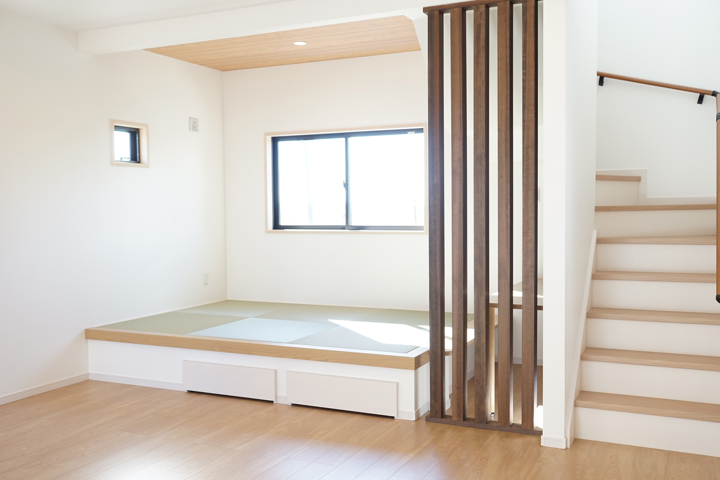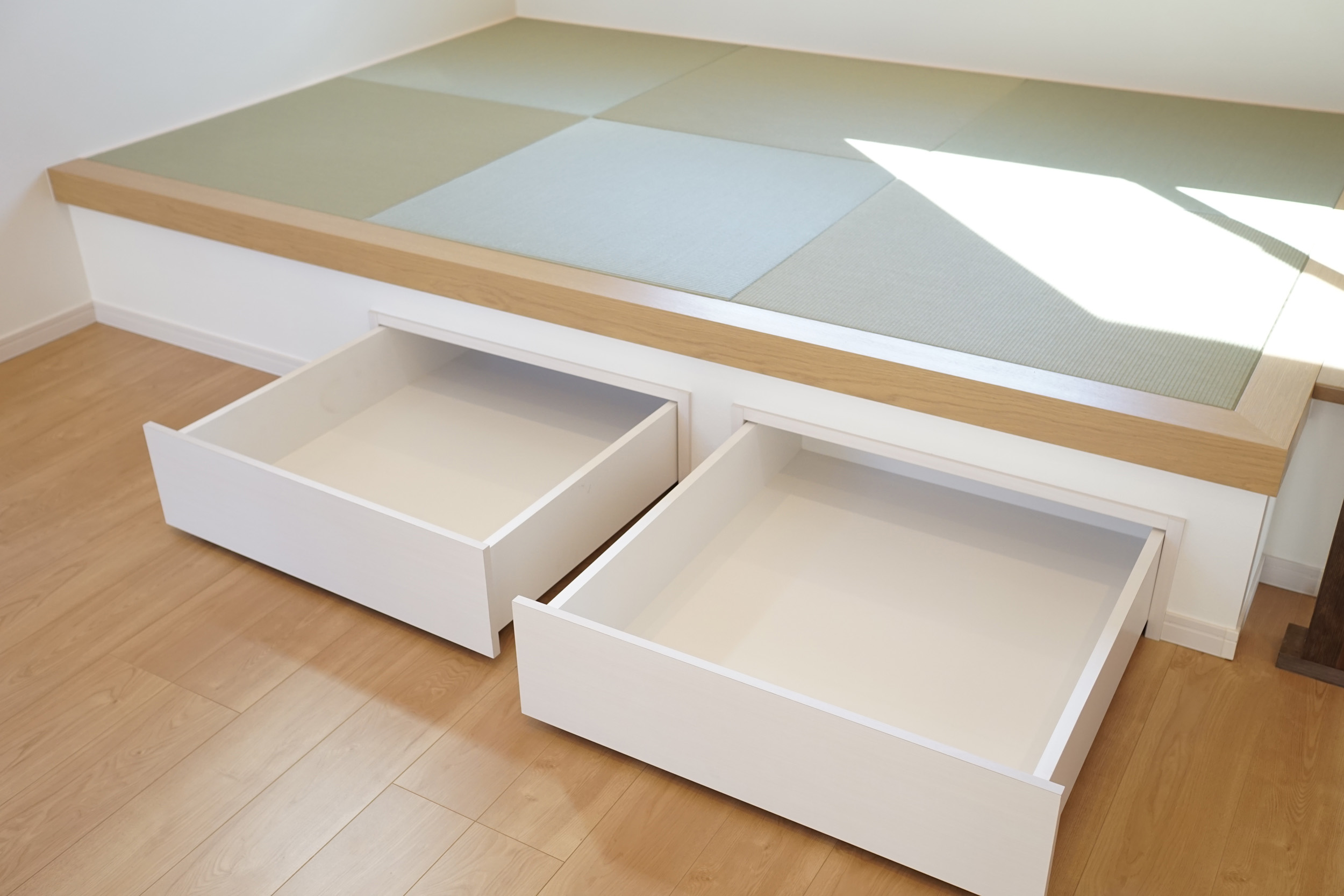 和スペースは少し段差を付けるだけで、ちょっとした腰掛としても利用できるので使い心地も大きく変わります。