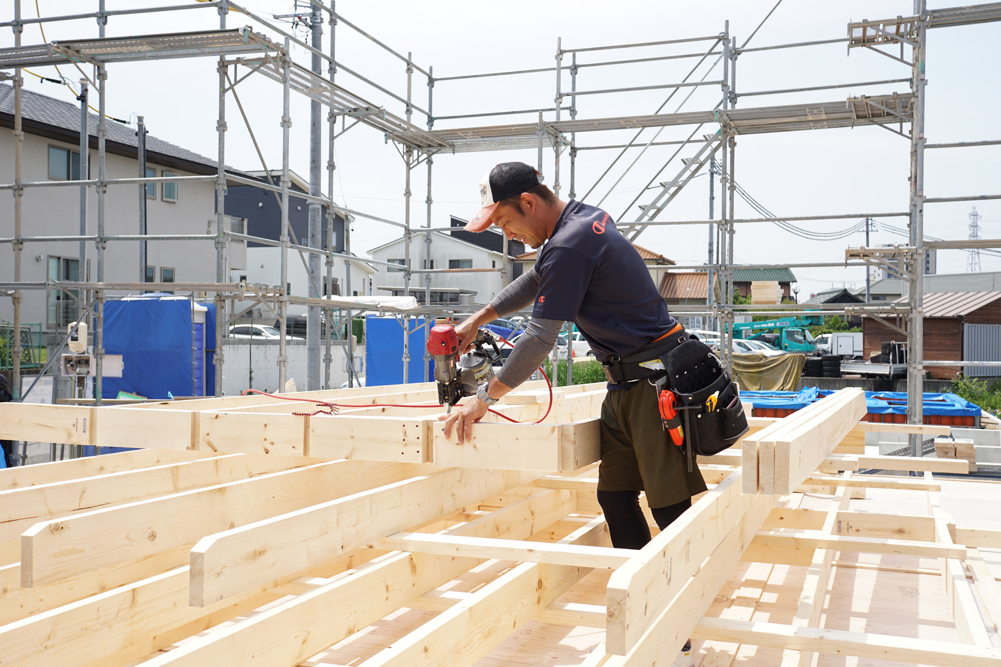 建て方工事に向けて、職人さんは前日から念入りに準備を進めてくれます。