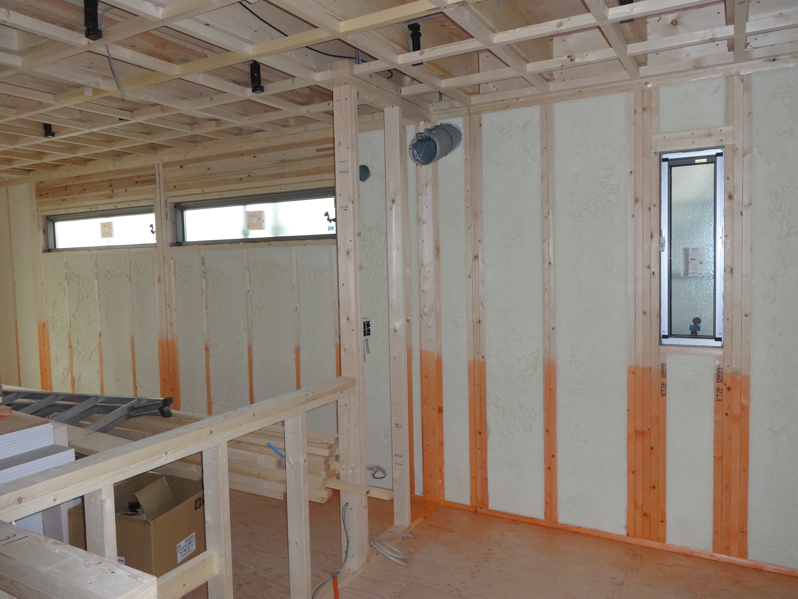 断熱工事が終わると、内部の造作工事が始まります。