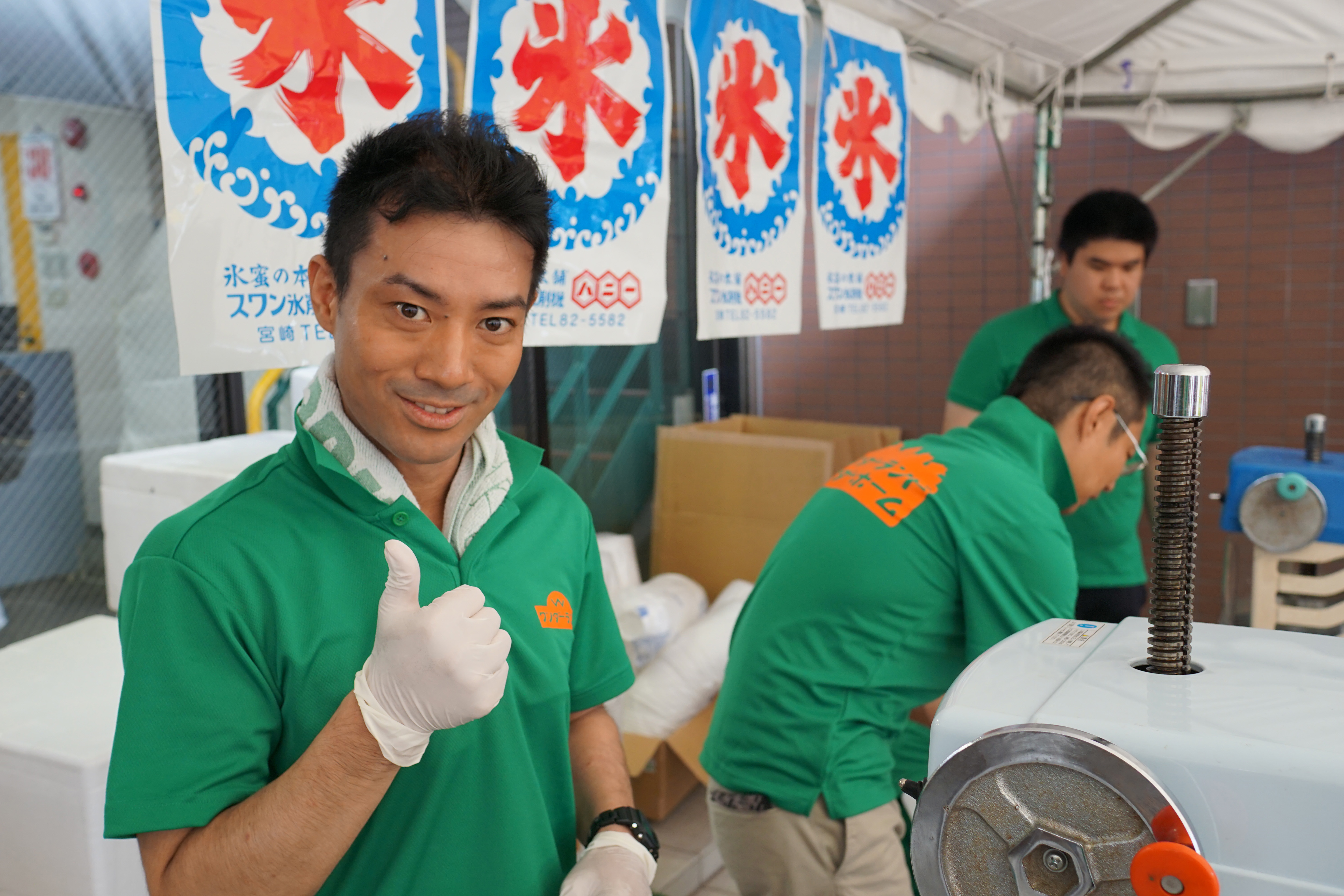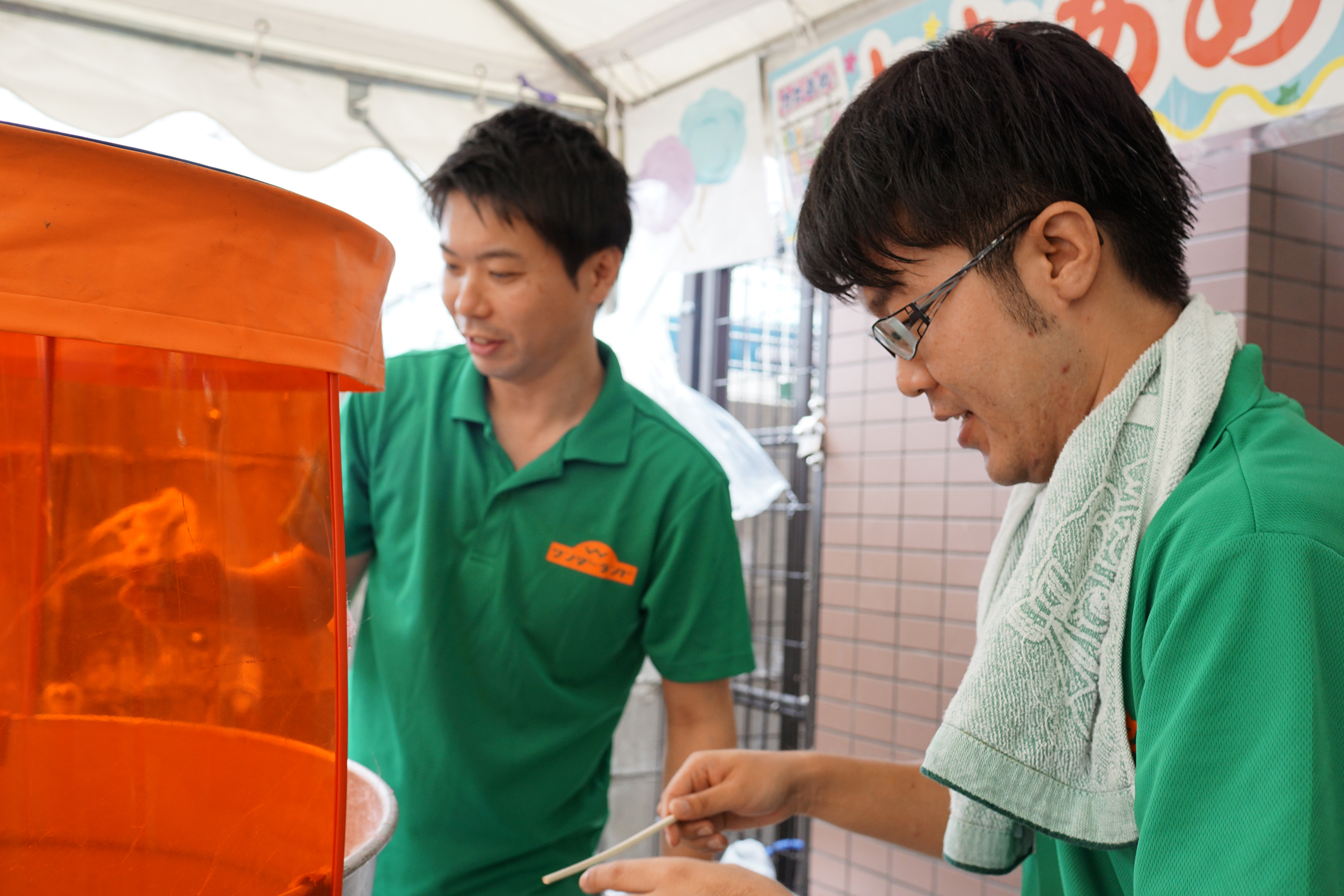 氷屋さんから仕入れた氷を使用した本格的なかき氷と、好きな色を選んで作れるわたがしはどちらもお子様に大好評でした!