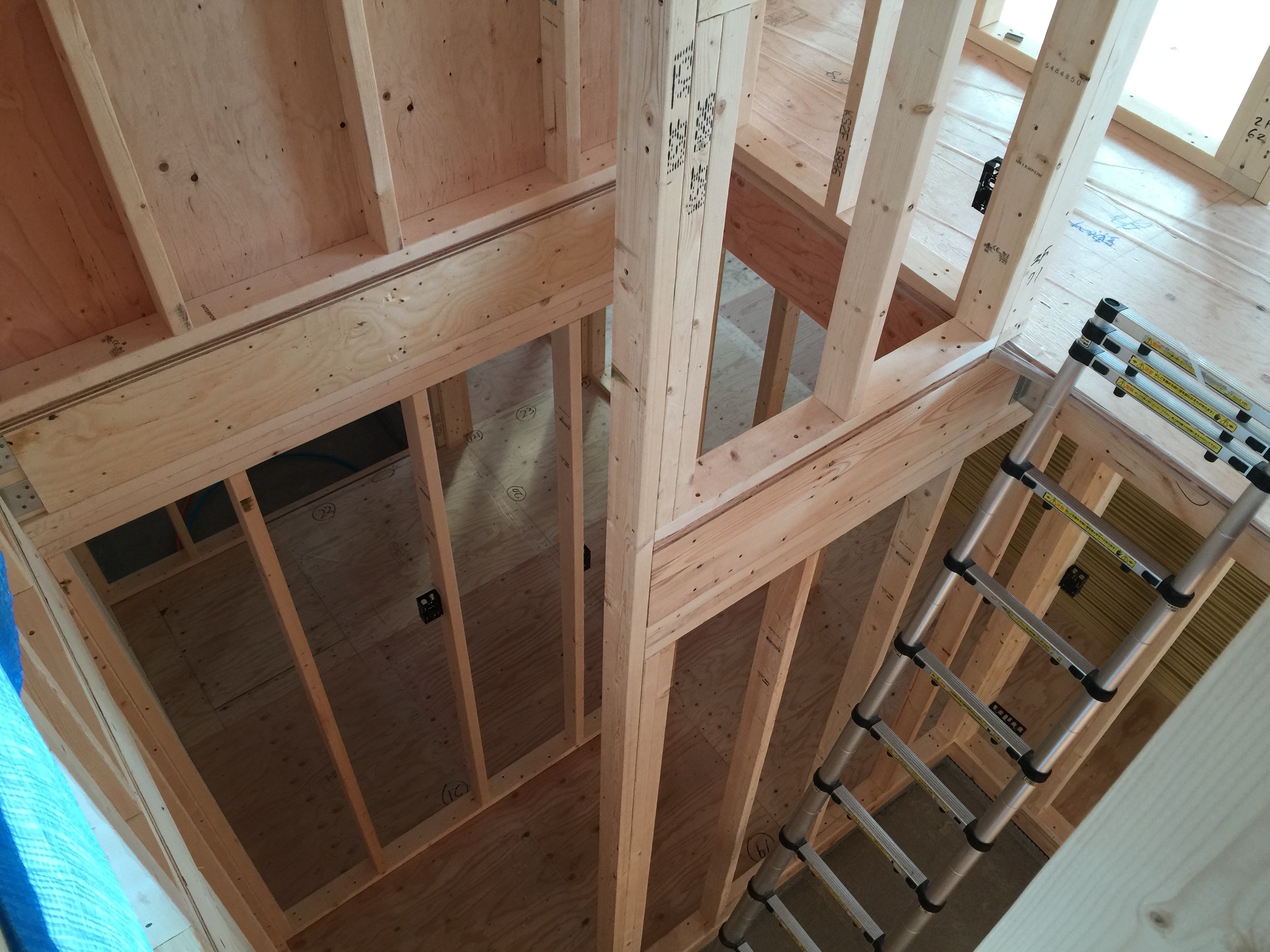 こちらの現場では建て方工事も終わり内部の工事が始まっています。