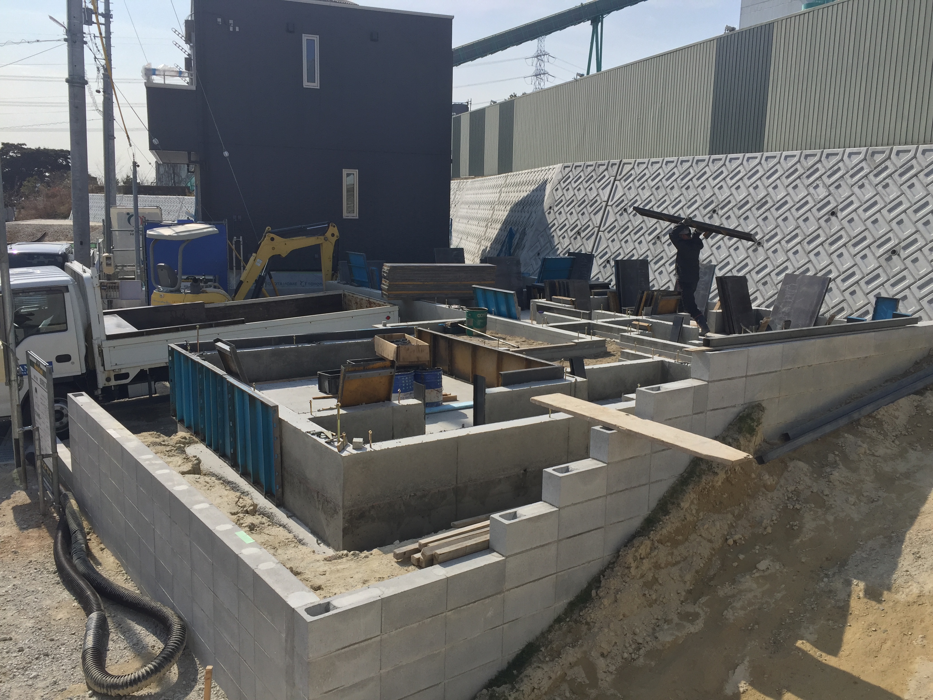 土地に高低差があるのでいつもよりも大掛かりな工事になっていますね。