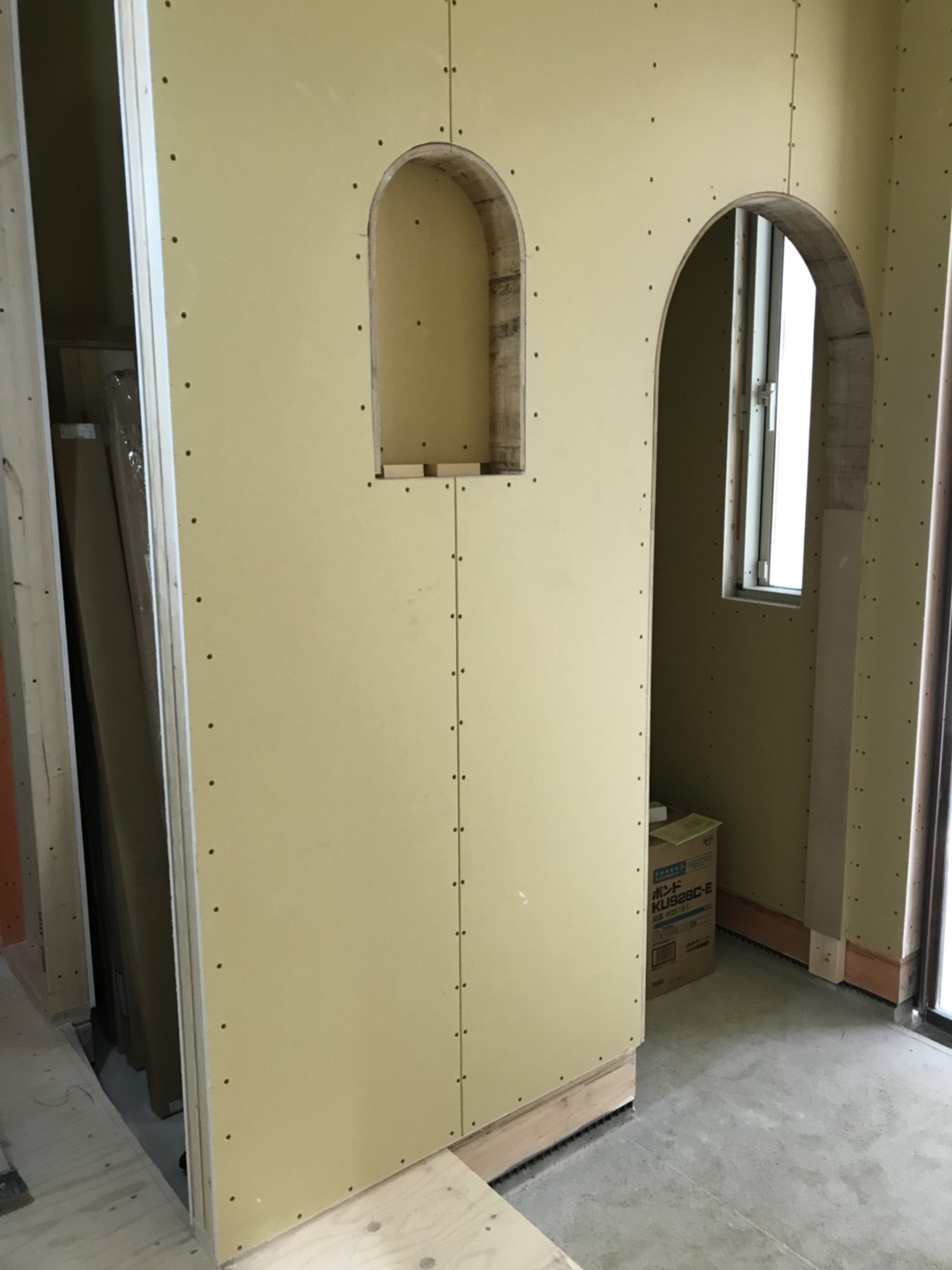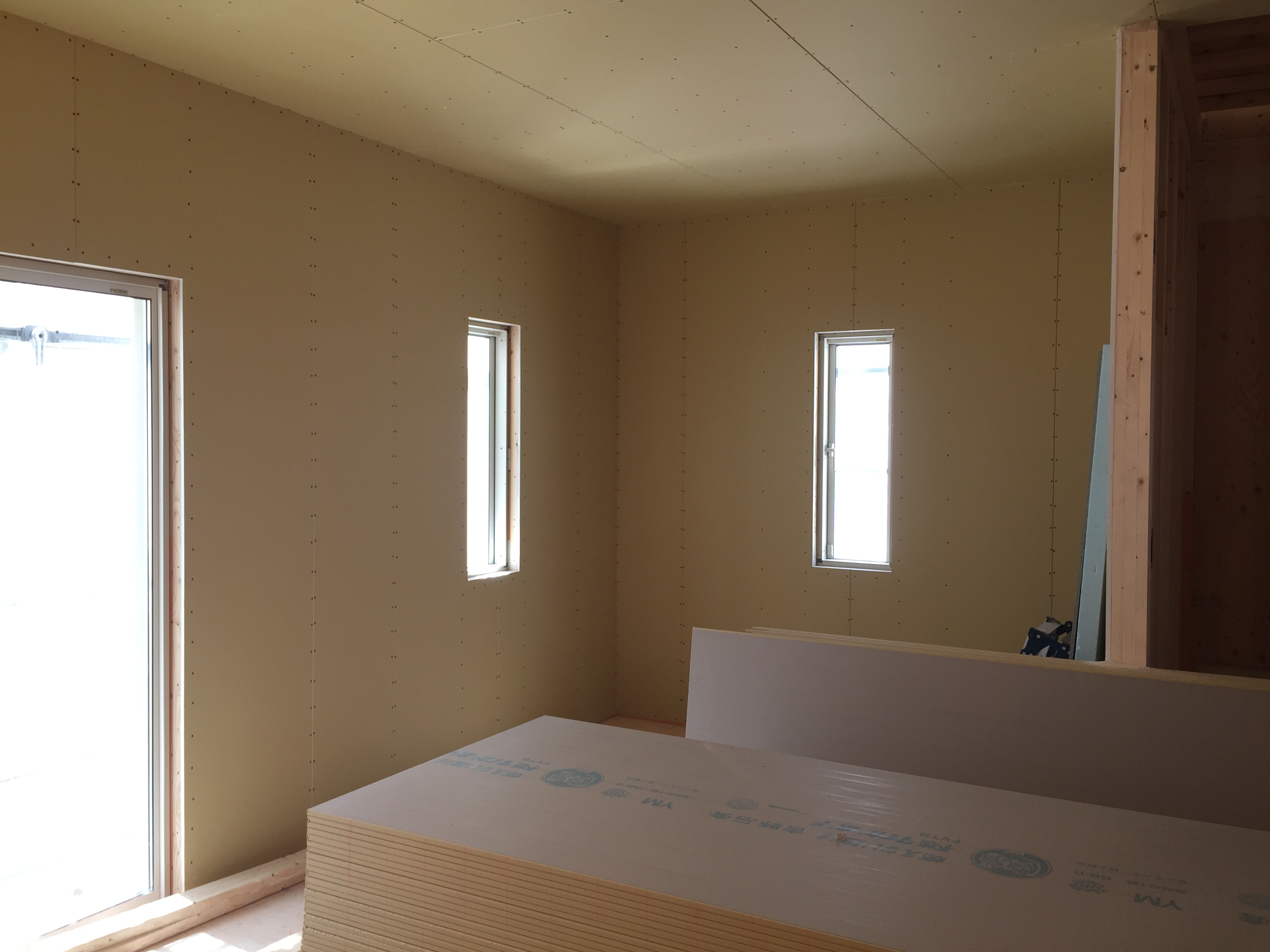 室内のボード貼りが行われています。