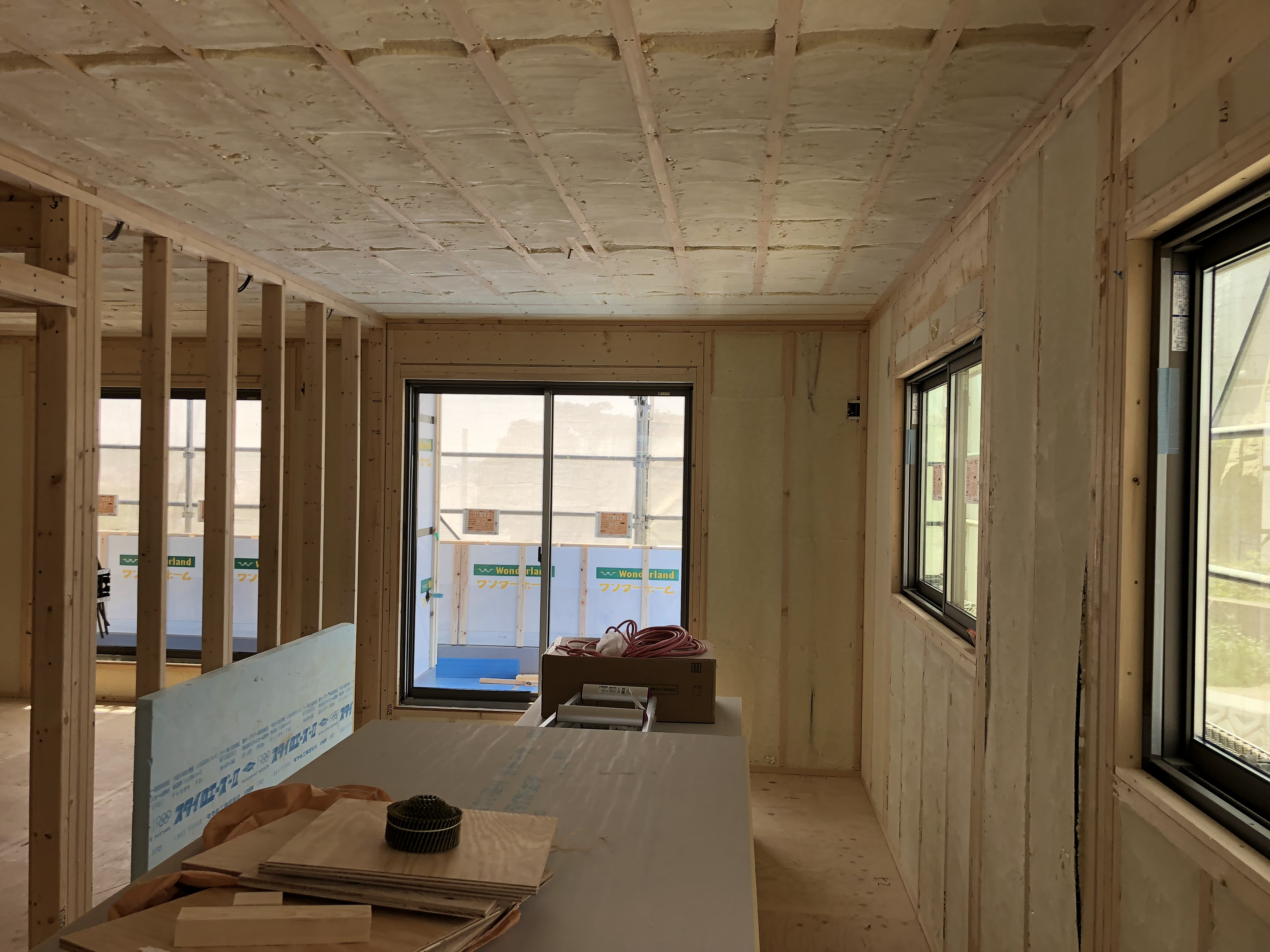 内部の工事がある程度進むと断熱工事が始まります。