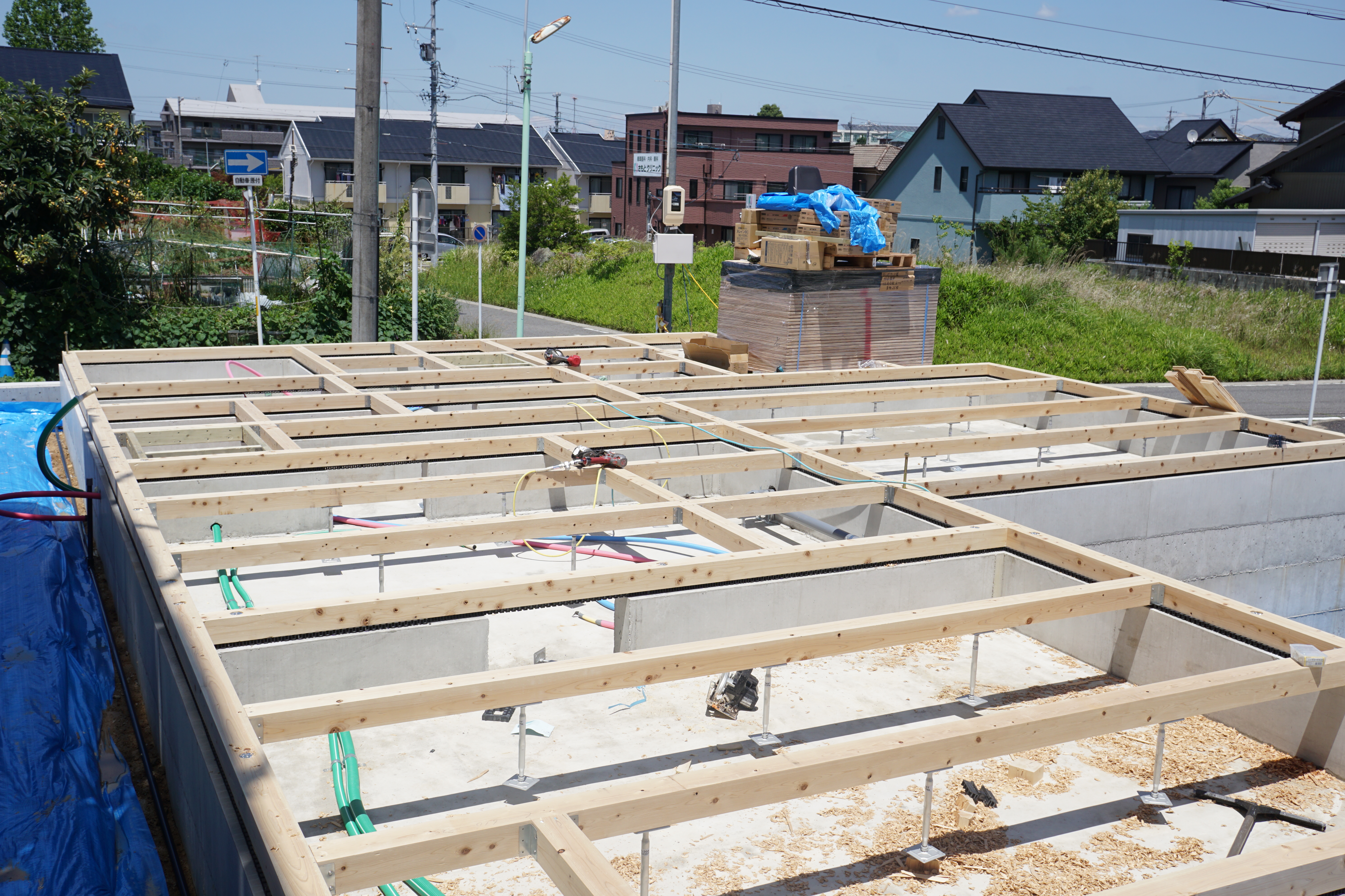 現在は土台部分の準備も終わり、建て方工事に向けて準備が進んでいます。