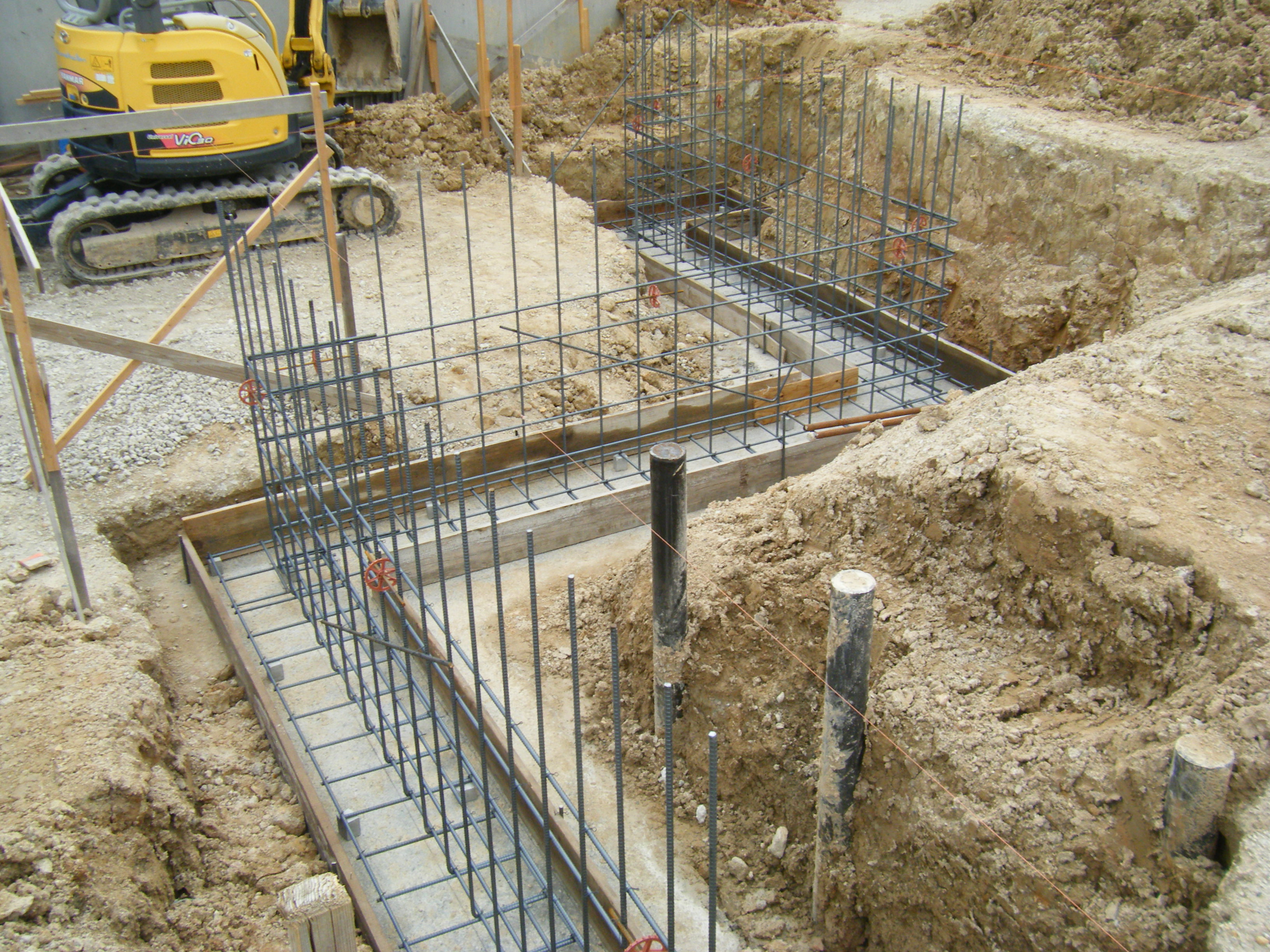土地に高低差があるのでまずは深基礎(ふかぎそ)の部分から基礎を作っていきます。