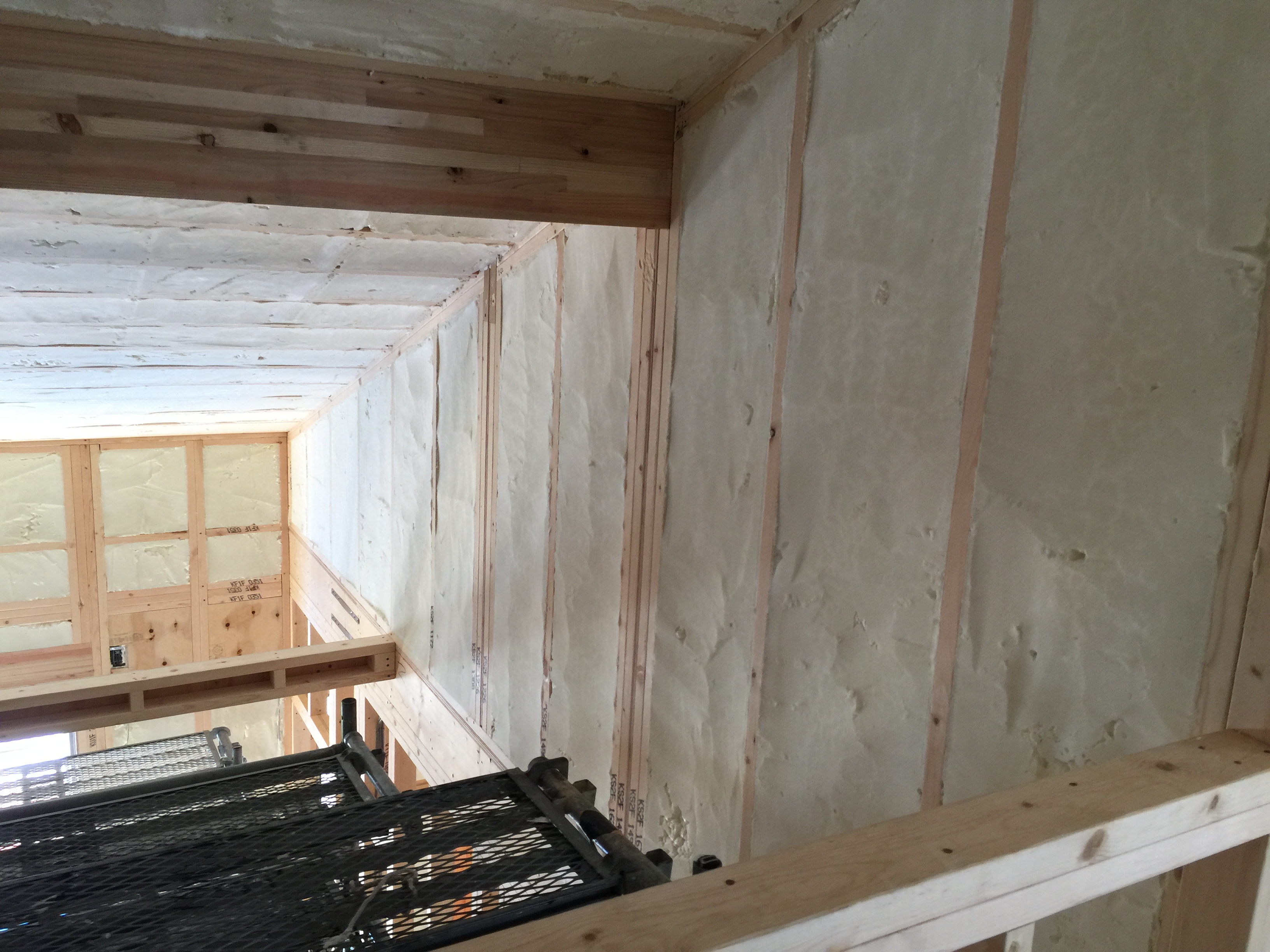 吹付断熱なので隅々にまでピッタリと施工されていることがわかると思います。