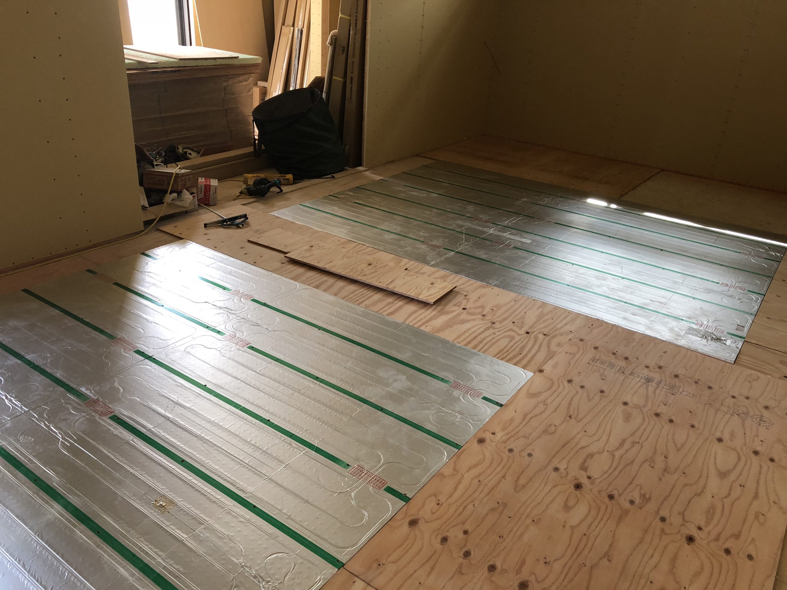 こちらは床暖房の設置風景です。