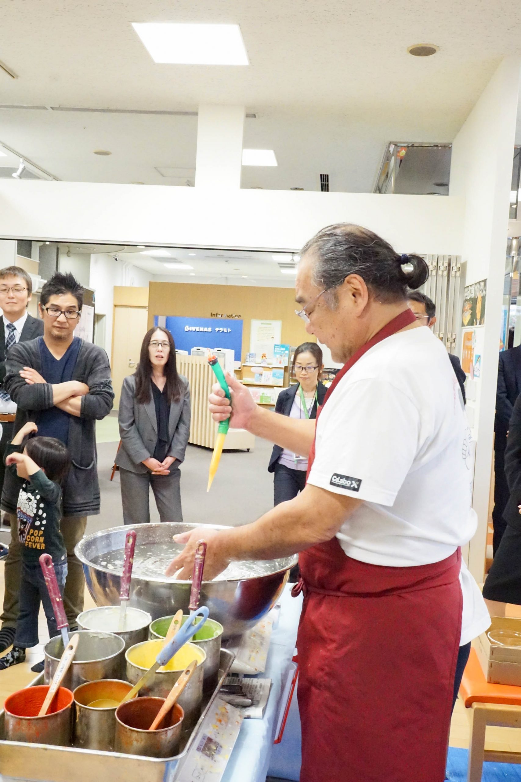 まず最初はせっかくチャンピョンである竹内さんにお越しいただいたのでデモンストレーションとして食品サンプルを目の前で作っていただきました。