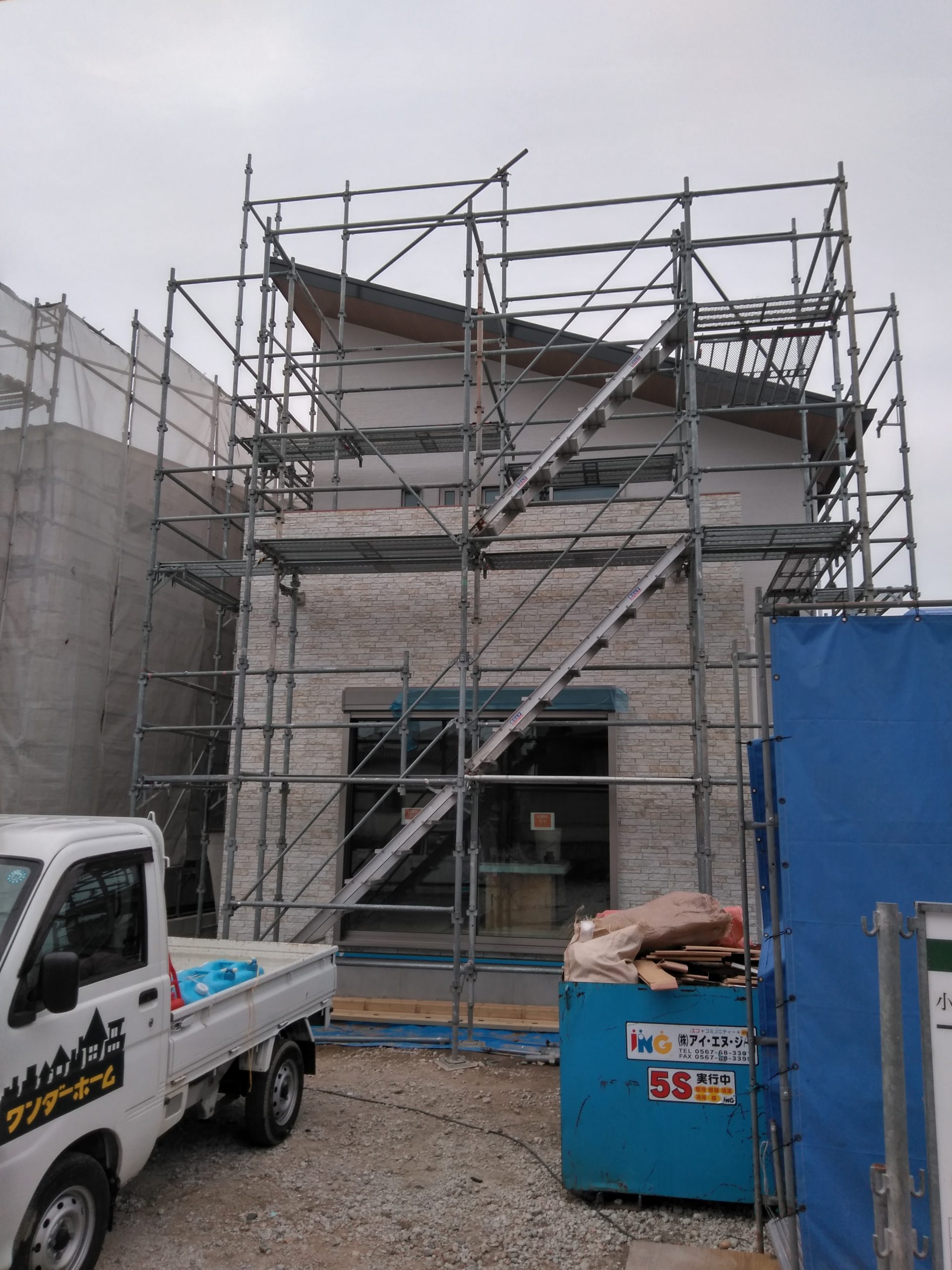 外部も外壁が貼り終わり、足場も外れましたよ!