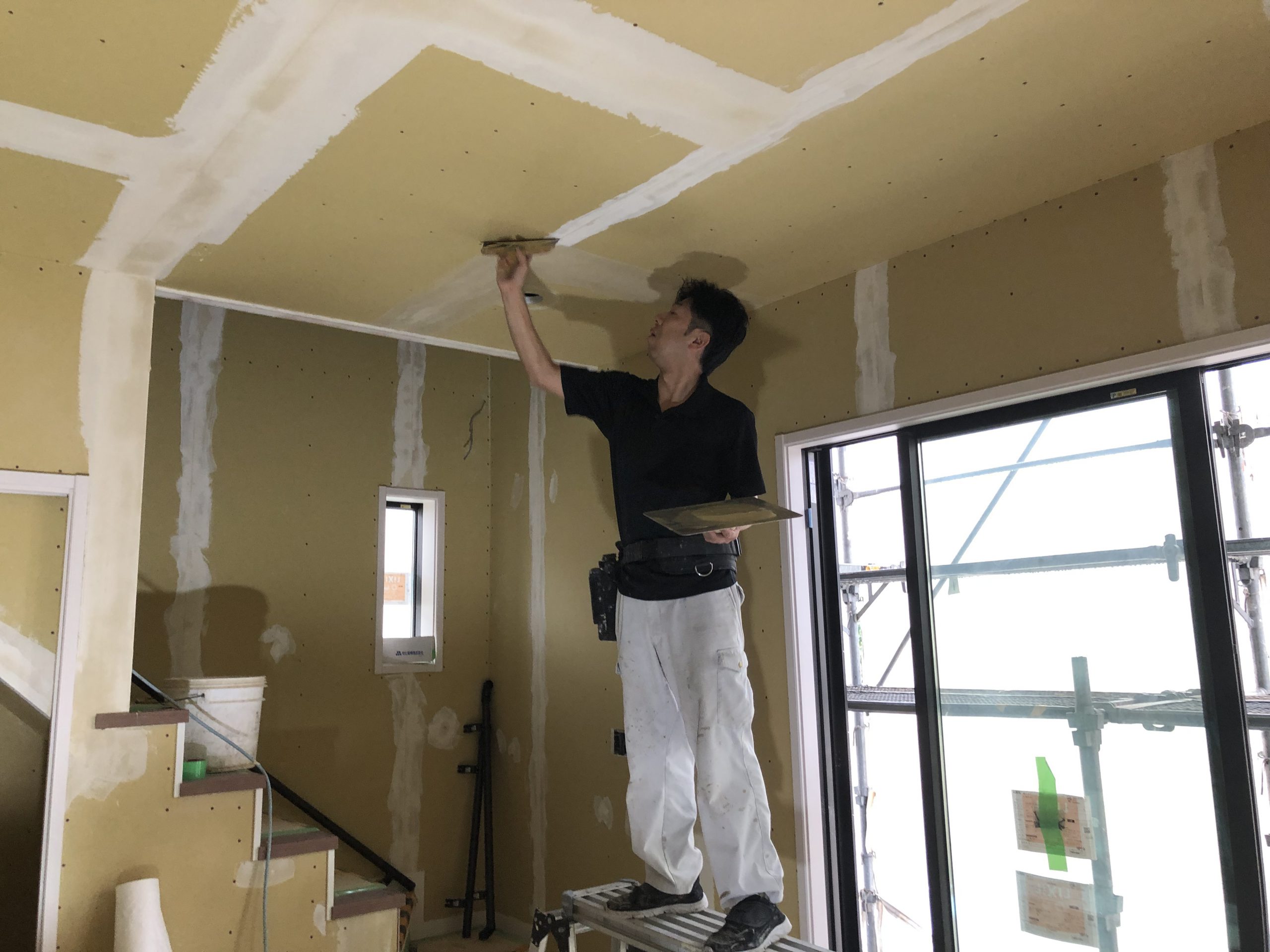 T様の現場では工事も終盤に差し掛かり、クロス工事が行われています。