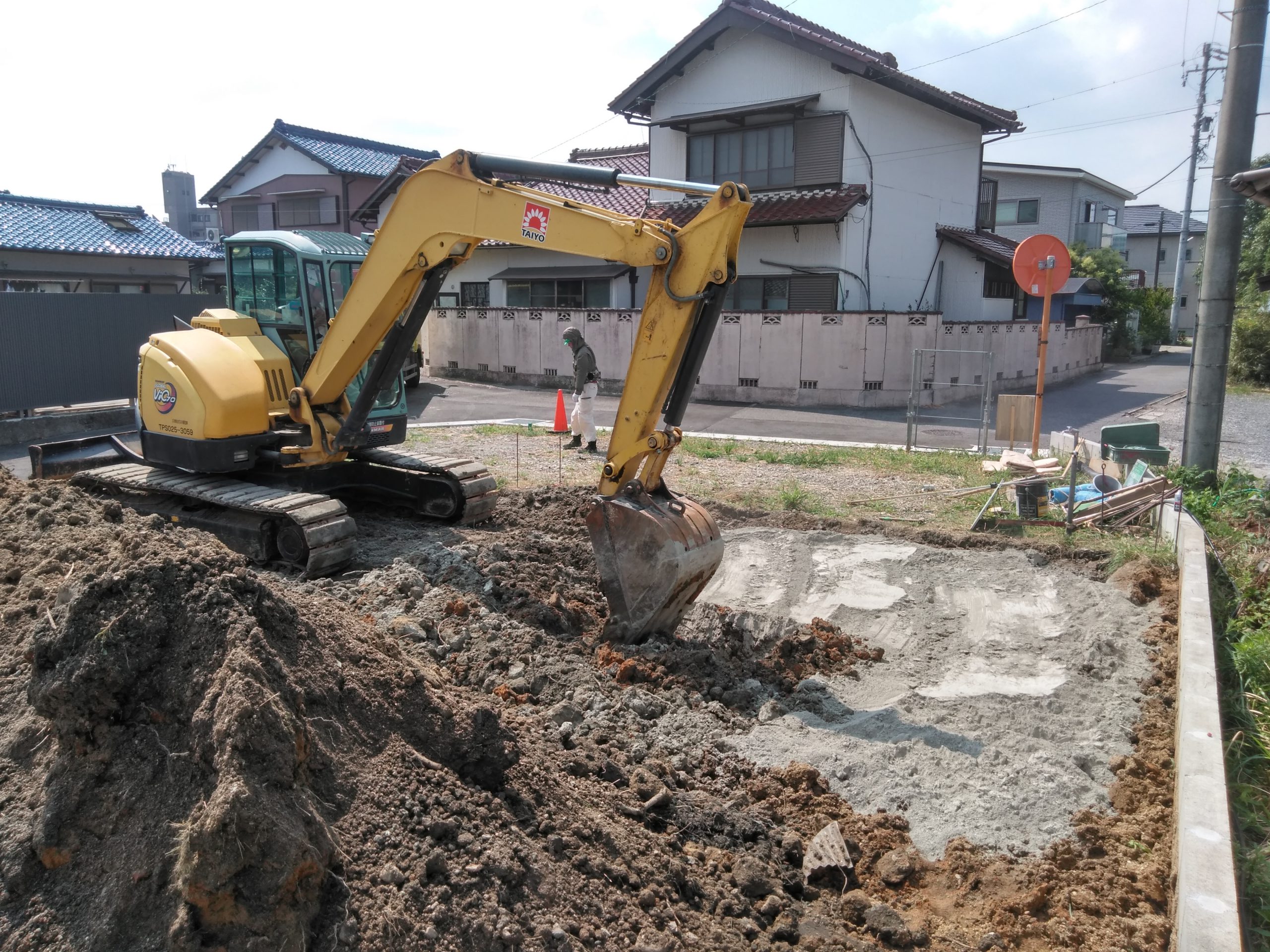 まずは地盤改良の1種である表層改良を行いました。