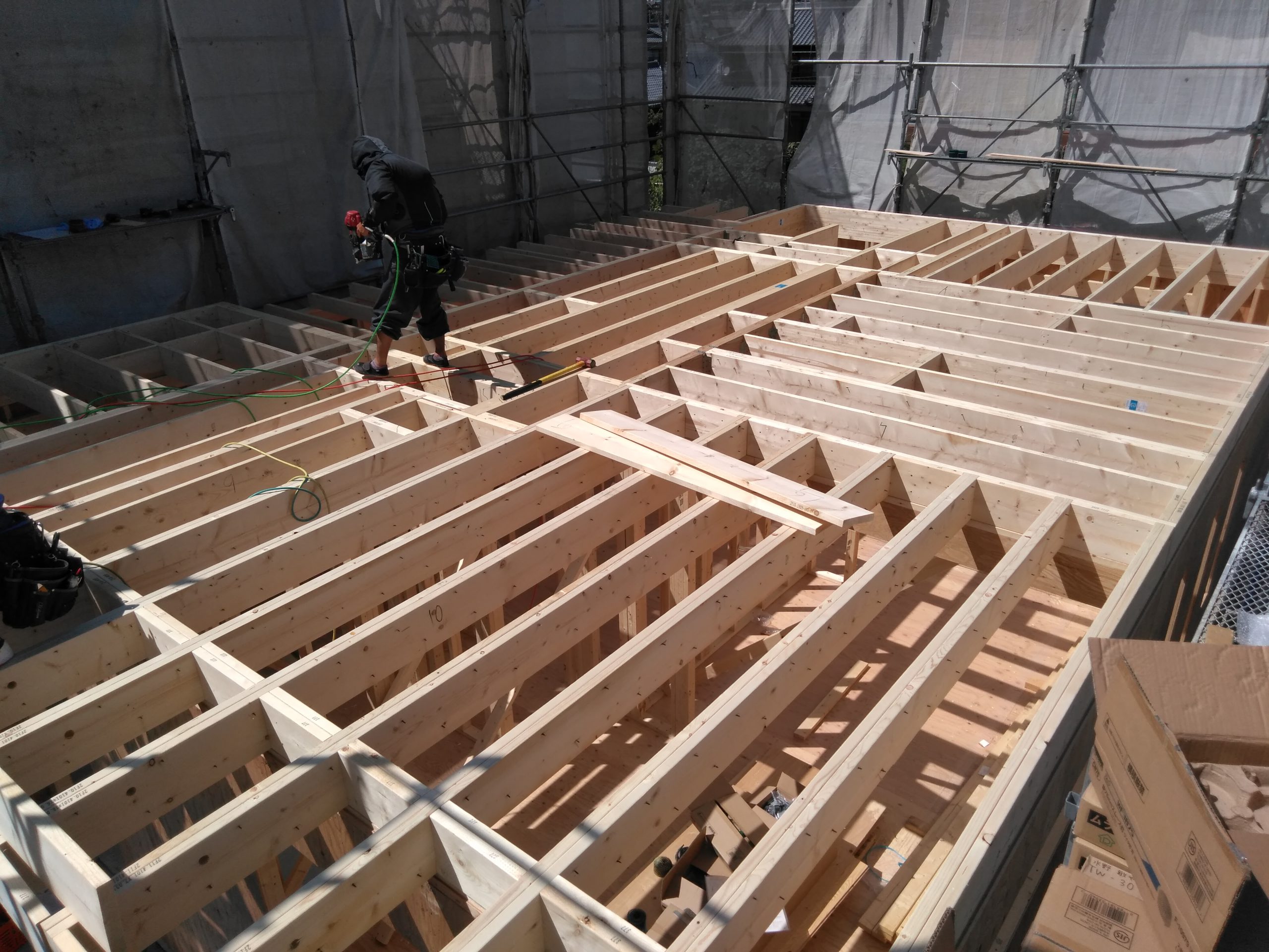 こちらは2階の床部分を組み立てているところですね。