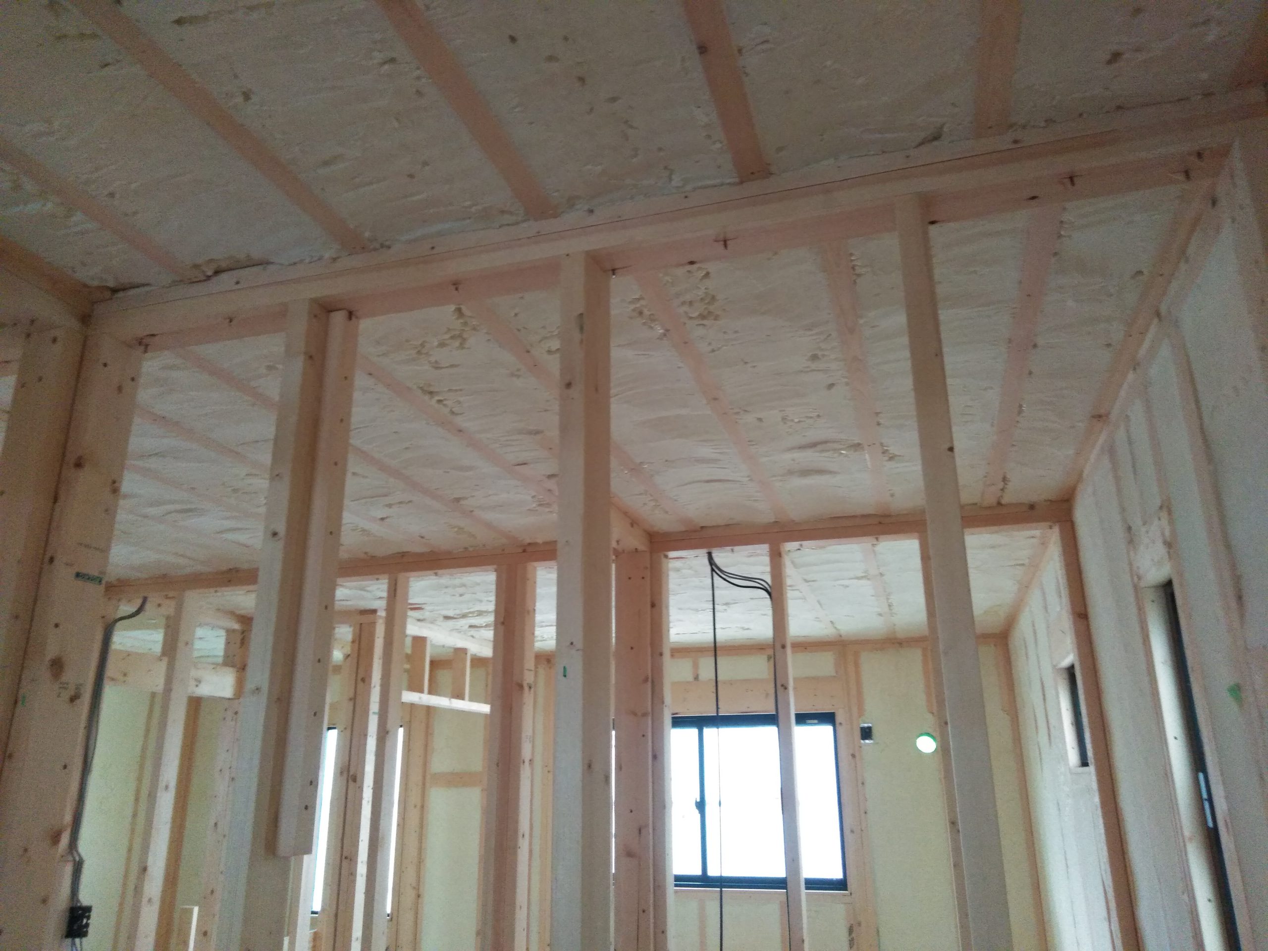室内の工事も断熱材を吹き付けるところまで進んでいます!