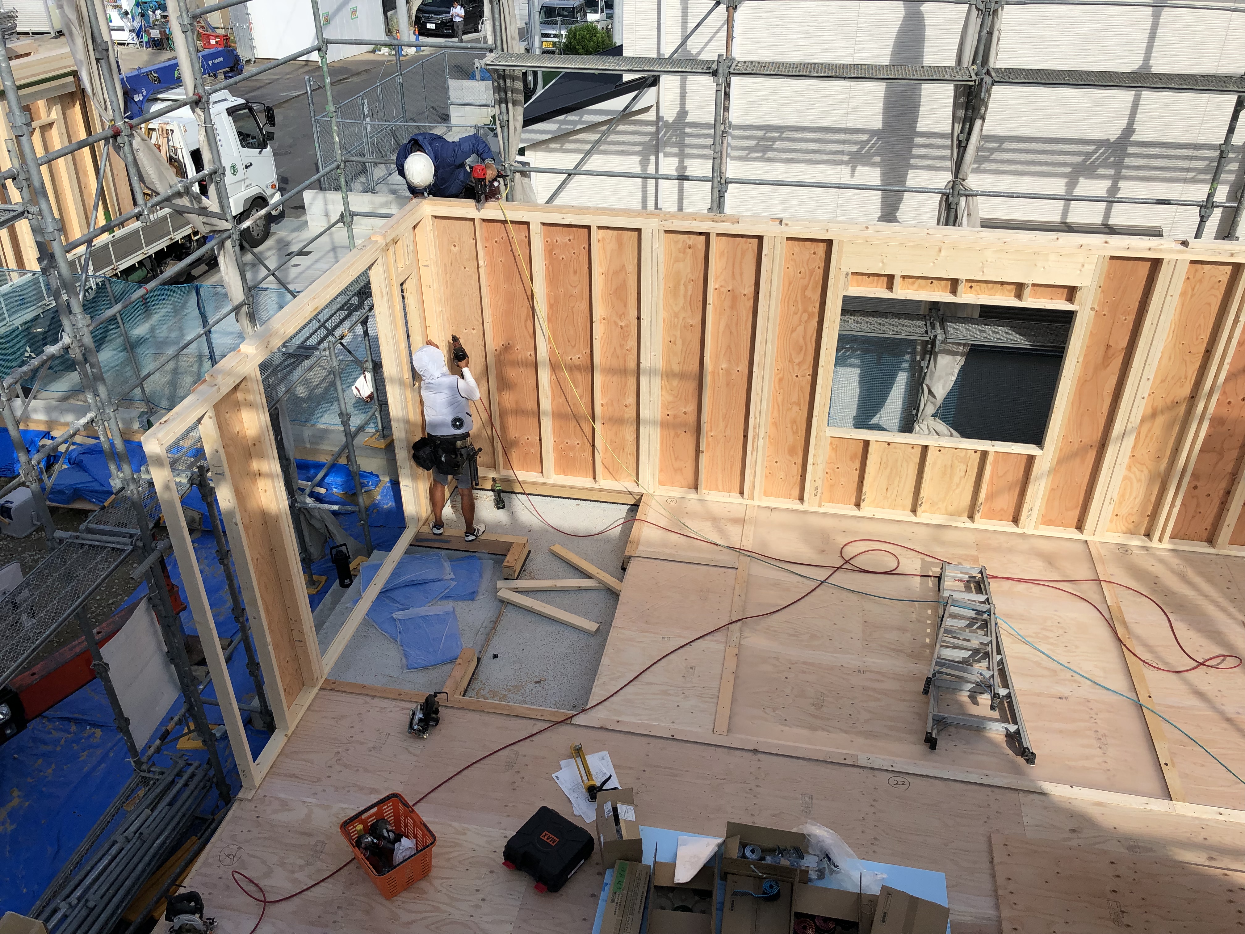 今は大工の梶原さんが内部のパネルを貼ってくれています。