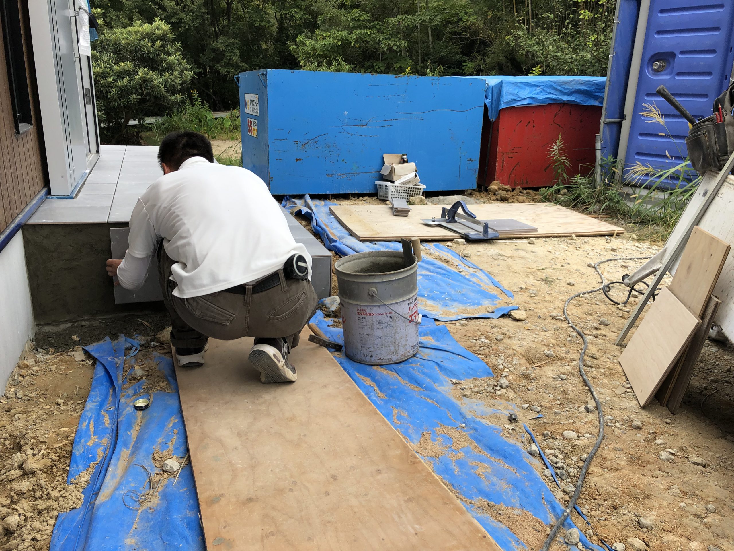 外では左官職人の児玉さんが玄関ポーチを作ってくれています。