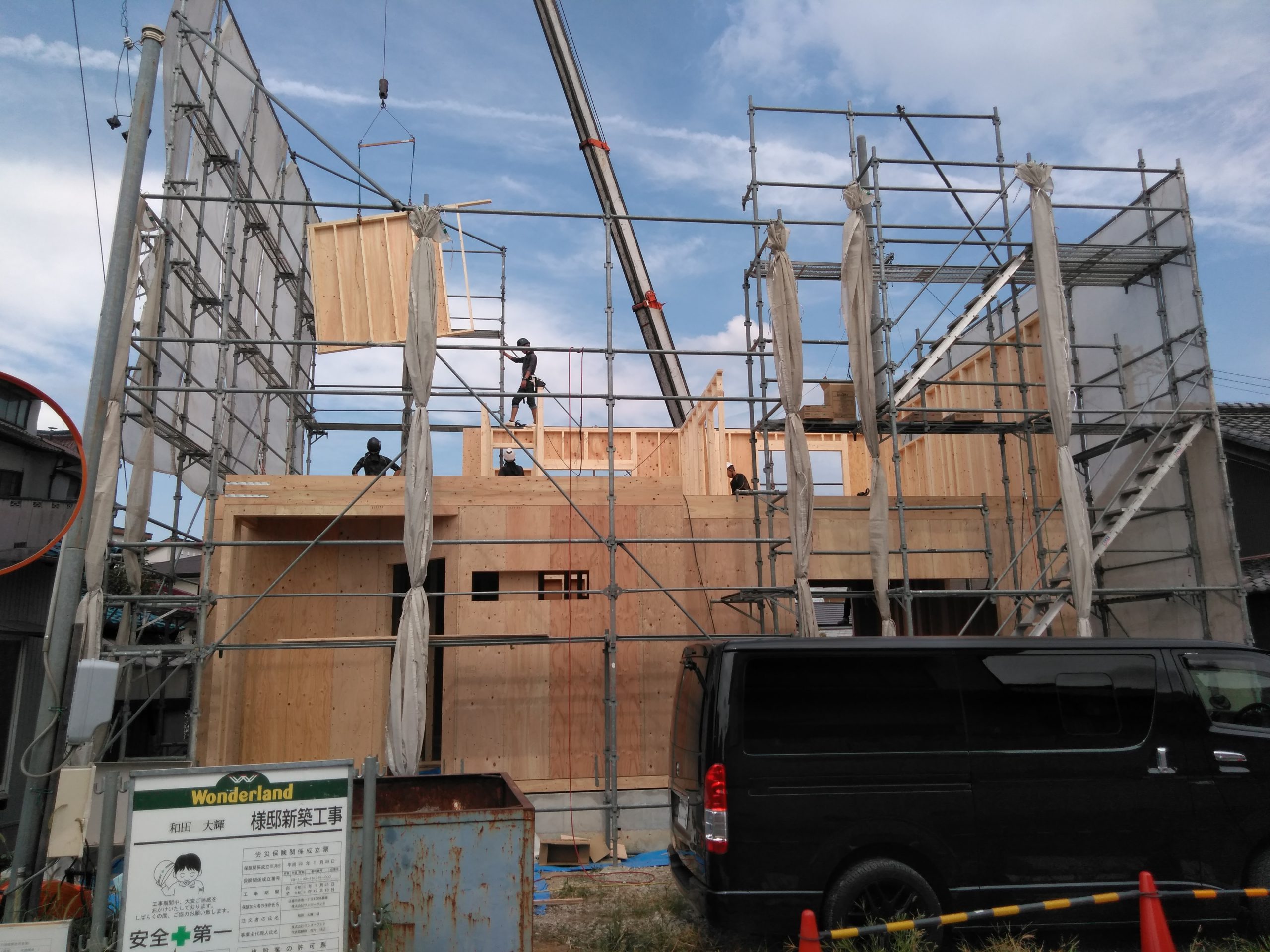 O様の現場では基礎工事が終わり、ついに建方工事が行われました。