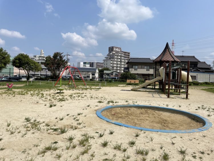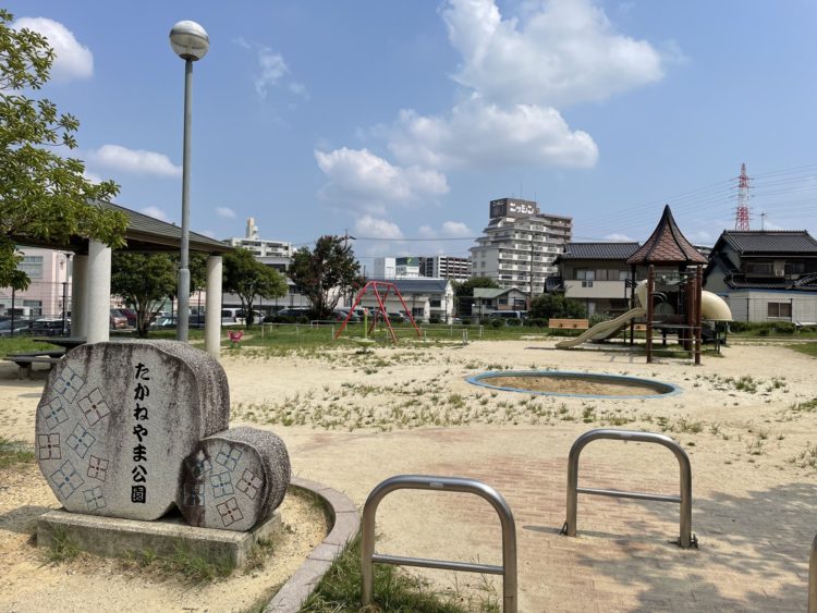 3つ目の公園は④たかねやま公園です。赤池駅から南方向に徒歩7分ほどの場所にあります。ブランコと滑り台、トンネル遊具、砂場があります。