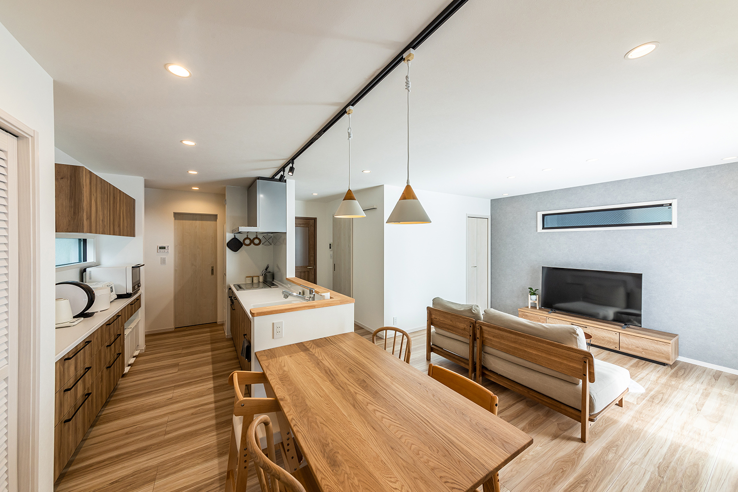 自然の温かみを感じる木目のフローリングや、家具と組み合わせ、ナチュラルで居心地の良い空間に仕上げました。