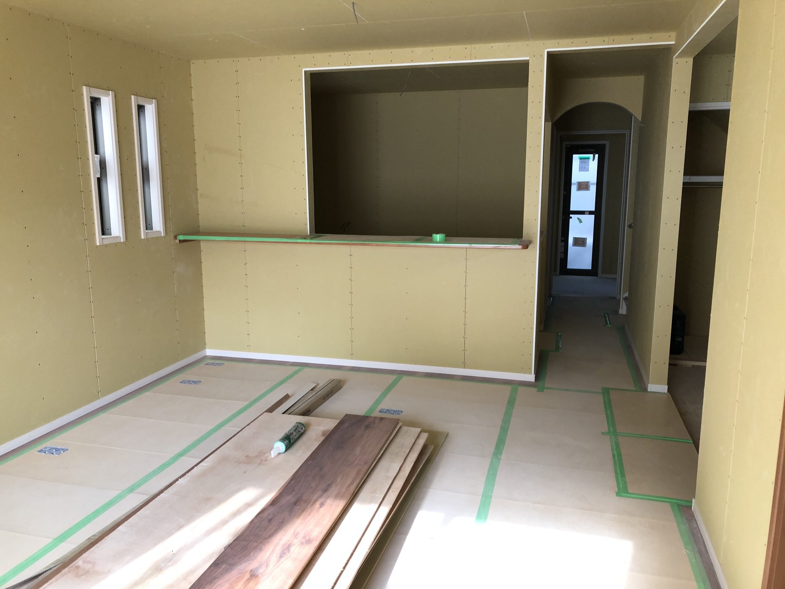床に置いてあるのがフローリングで、これから貼っていくところですね。