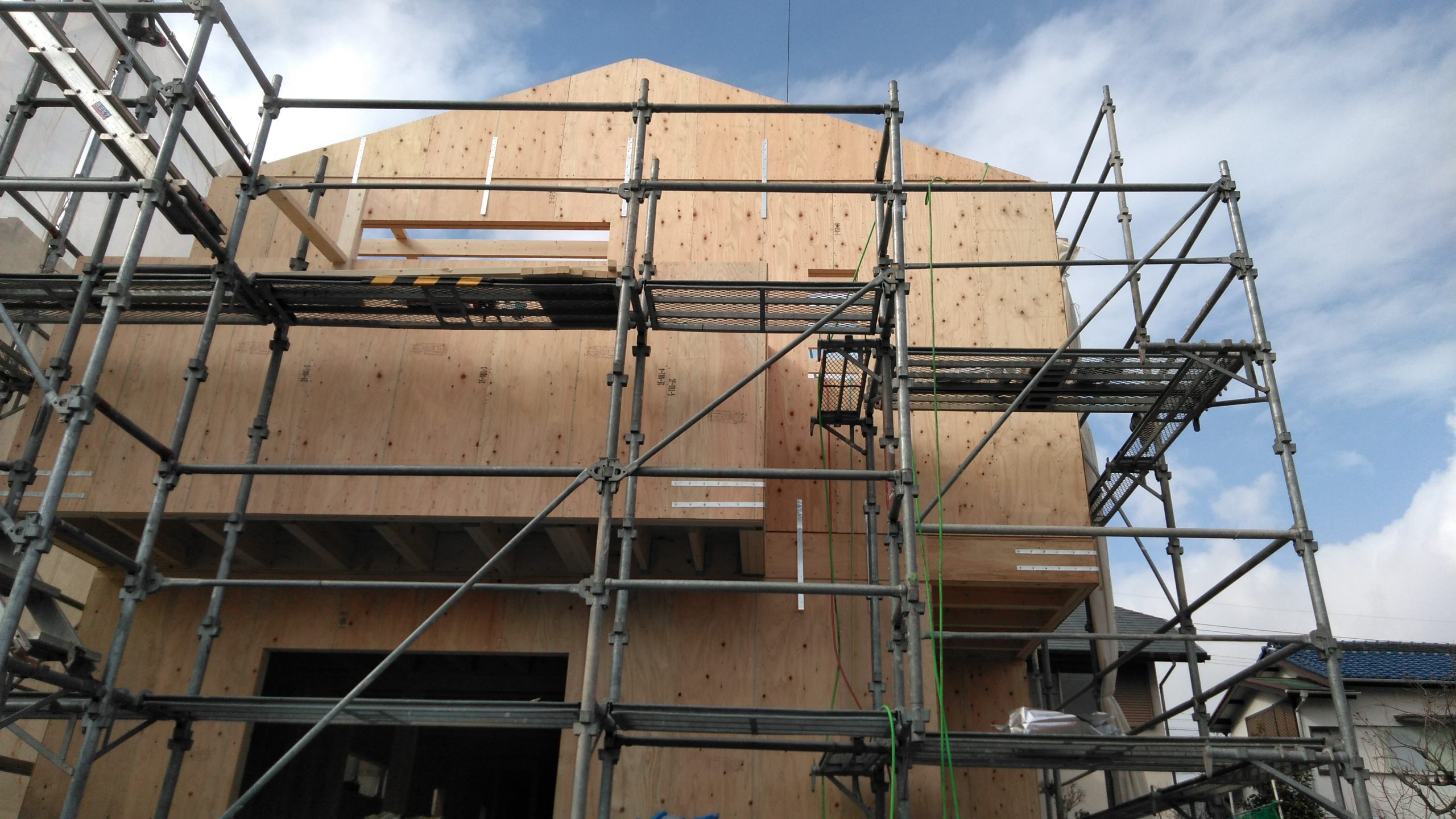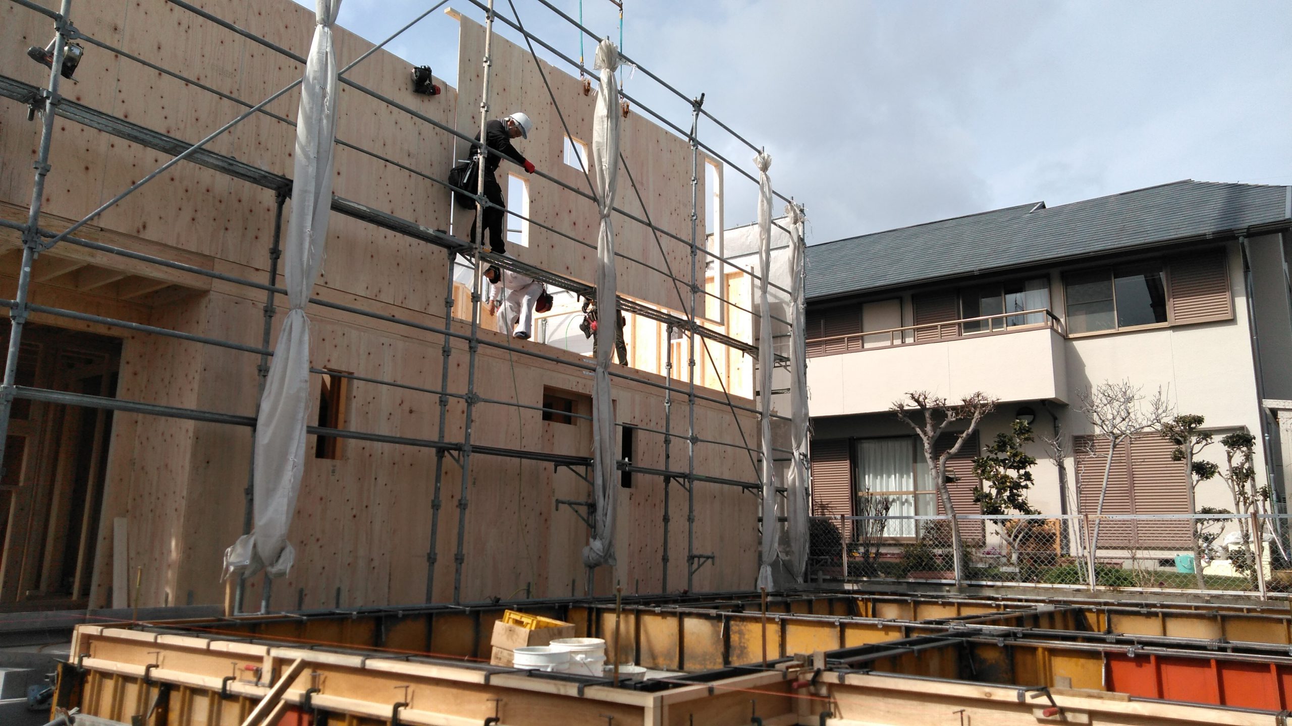 その後、現在では外壁を貼る前の防水処理の段階まで進んでいます。