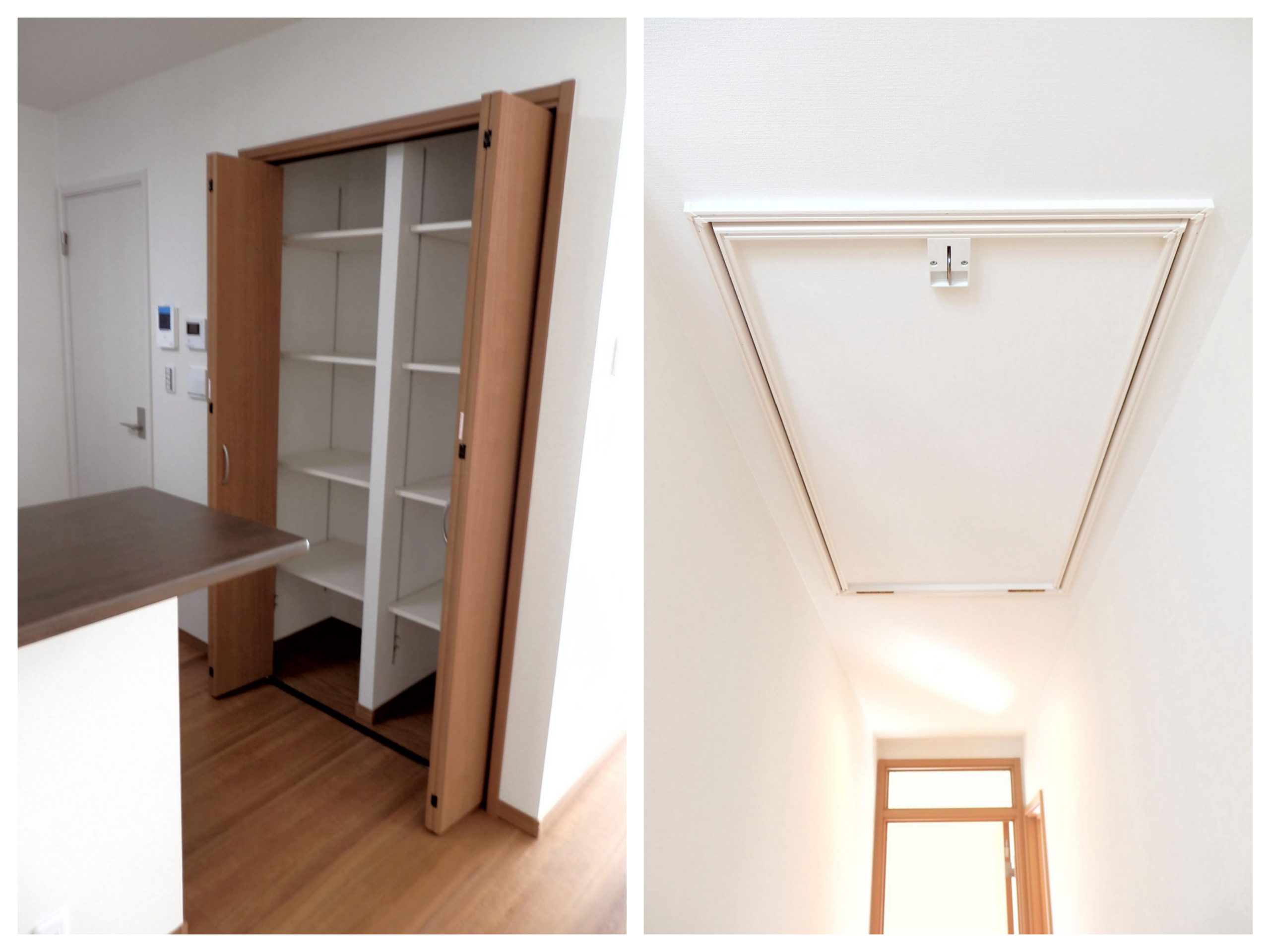 リビングの壁面収納や2階のファミリークローゼットをはじめ、収納力抜群のお家です。