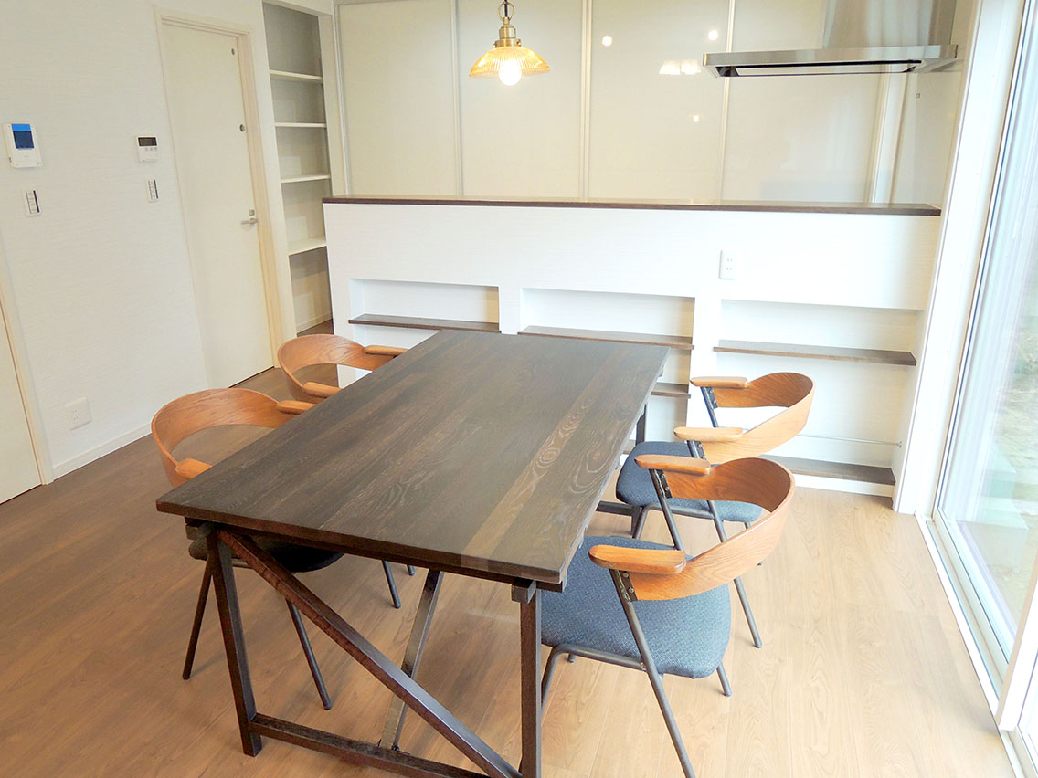 キッチン裏の飾り棚やニッチなどおしゃれに飾ることもできるスペースもあるので、見せる部分と隠す部分をしっかり分けたメリハリのある空間作りができるお家になりました!