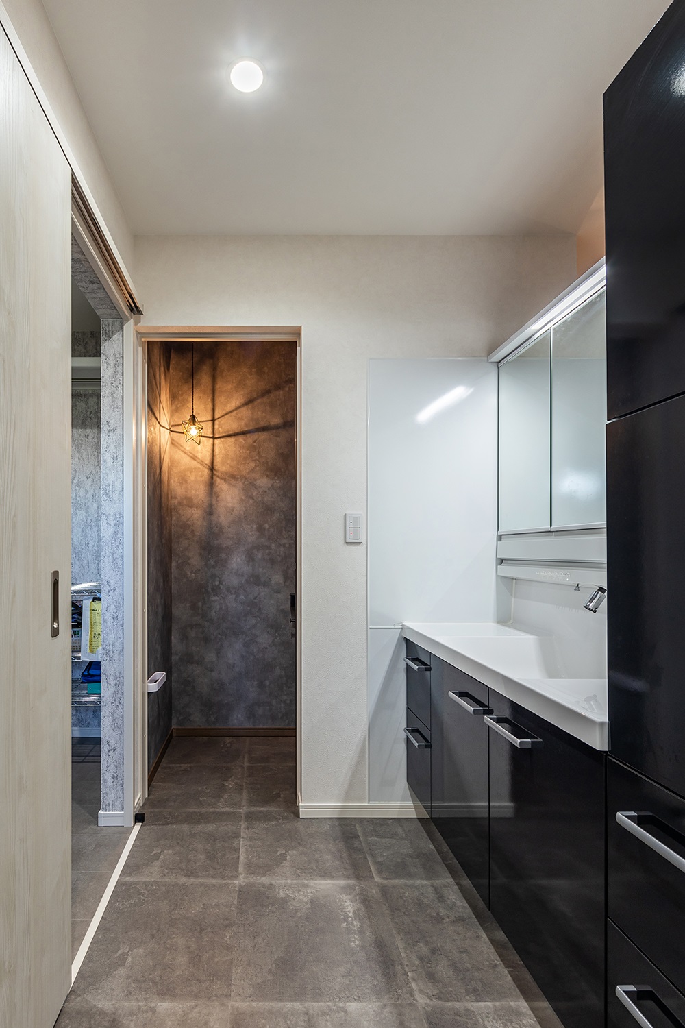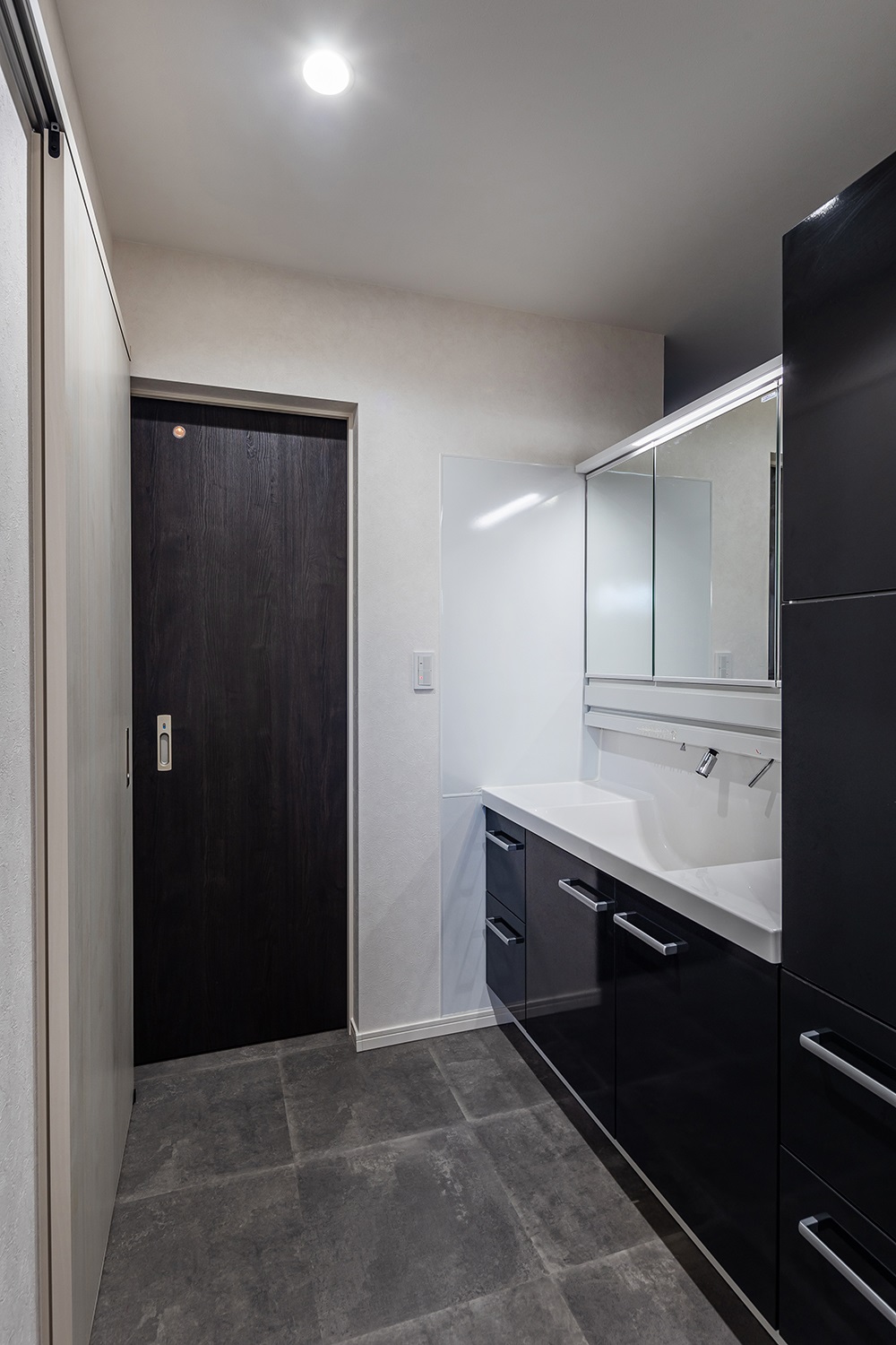 洗面室は、モノトーンで統一しスタイリッシュに仕上げました。