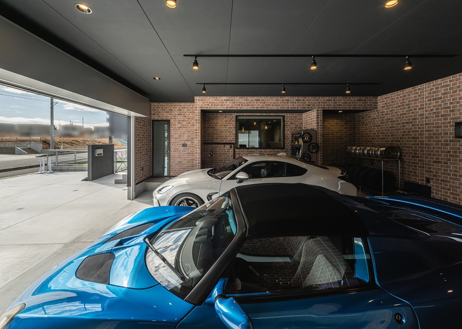 愛車2台をゆったりと格納できるインナーガレージは、まさに大人の秘密基地。
