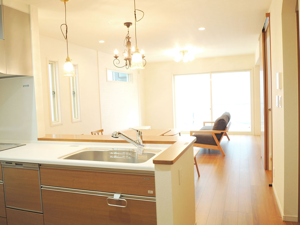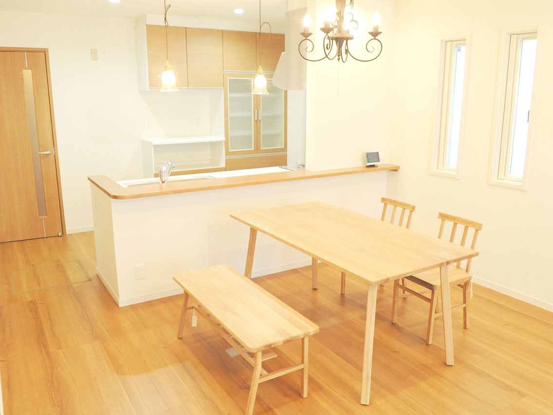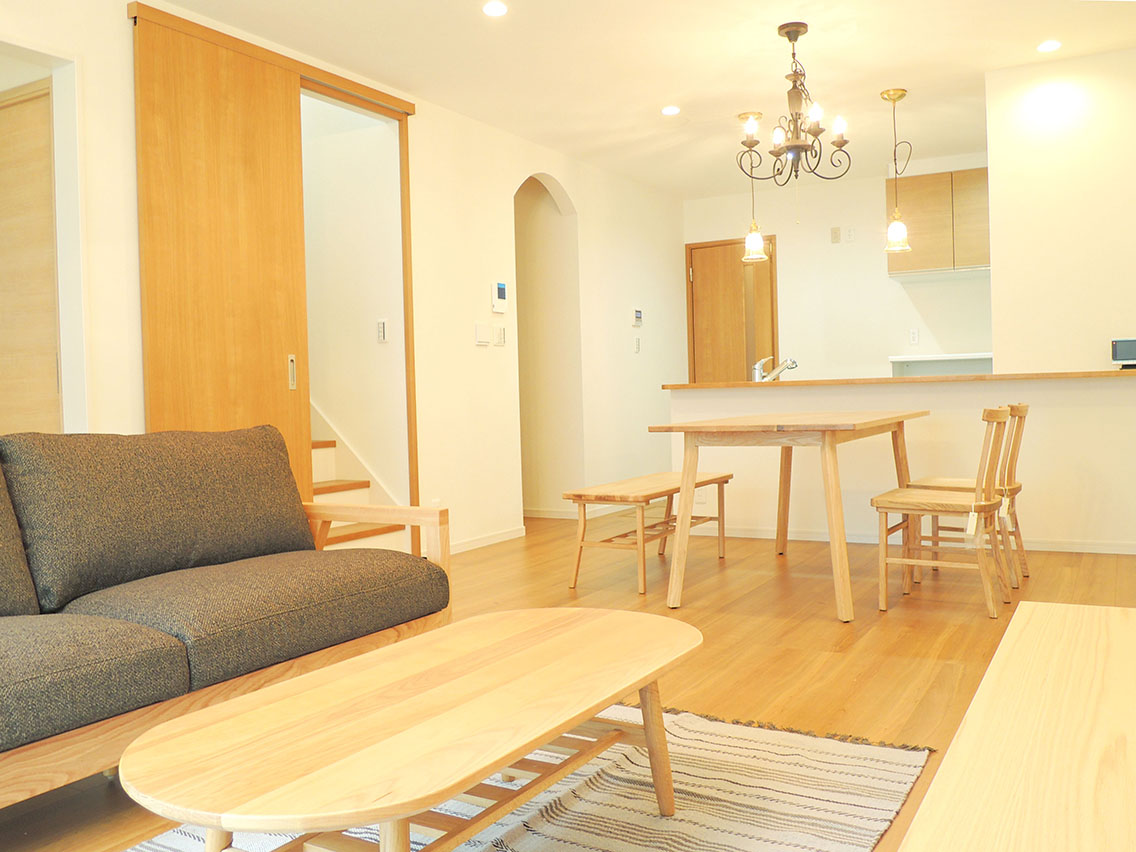 白を基調にしつつ、木材本来の色を活かしたカフェテイストの家になりました。